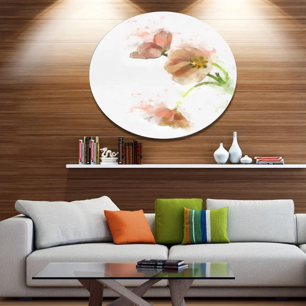 Bring Contemporary Abstraction to your home with this large Circle Metal wall art. This Cute Tulips Illustration Watercolor Metal Artwork makes it the focal point of any room or office. - White Gloss Coating ensures colors are extra vibrant with light reflection.- Aluminum grade Sheet Metal with 1 inch mounting frame on the back giving the illusion that the artwork is floating on the wall..- Mounting Brackets are included along with instructions.- High Quality Digital images are created directly into a glossy aluminum panel producing a stunning and captivating print into the glossy finish of the metal.- Water, Fire and Scratch resistant HD Aluminum panels.- Looks better than any photo paper and guaranteed to last at least 20 years- Easy to clean with a microfiber cloth. Colors are far superior to regular Canvas Art. - Easy to Hang