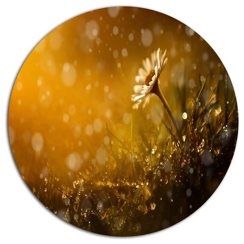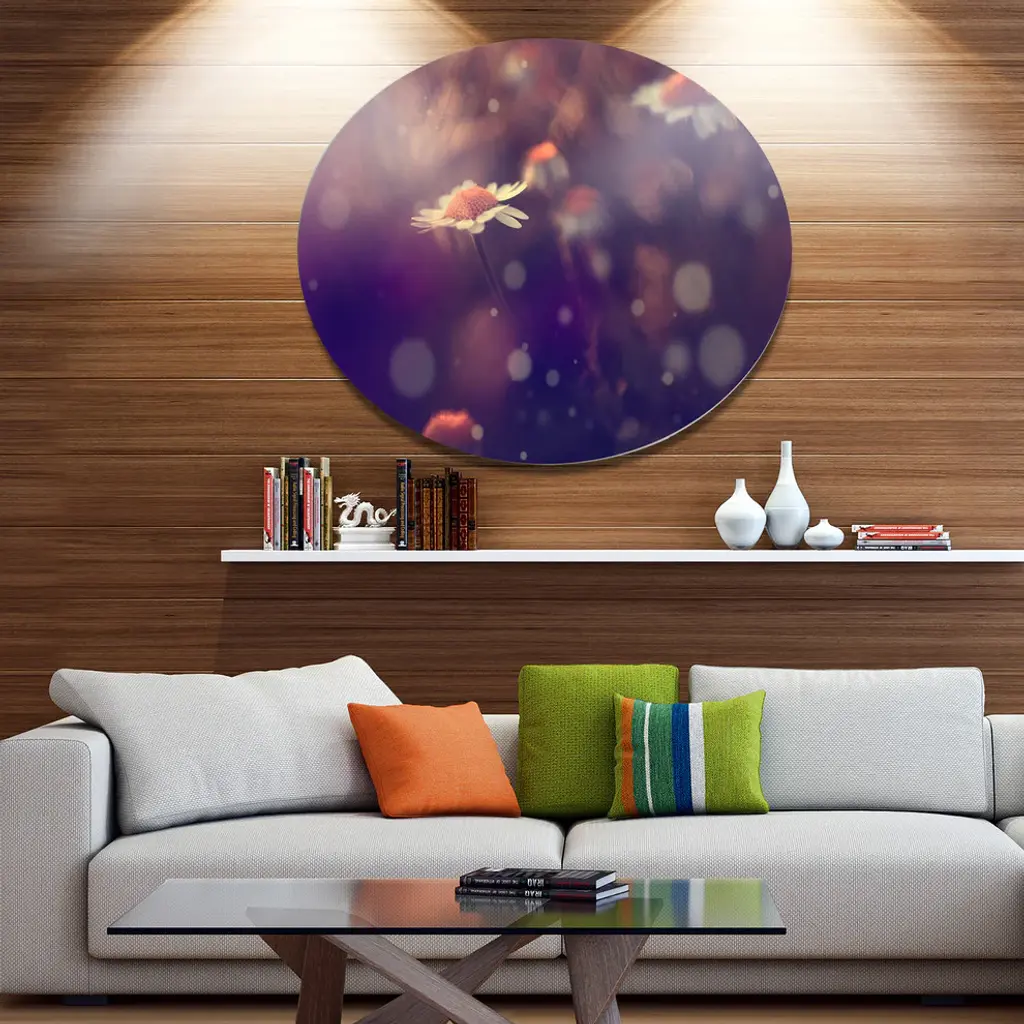 Bring Contemporary Abstraction to your home with this large Circle Metal wall art. This Cute Vintage Flower With Bokeh Metal Artwork makes it the focal point of any room or office. - White Gloss Coating ensures colors are extra vibrant with light reflection.- Aluminum grade Sheet Metal with 1 inch mounting frame on the back giving the illusion that the artwork is floating on the wall..- Mounting Brackets are included along with instructions.- High Quality Digital images are created directly into a glossy aluminum panel producing a stunning and captivating print into the glossy finish of the metal.- Water, Fire and Scratch resistant HD Aluminum panels.- Looks better than any photo paper and guaranteed to last at least 20 years- Easy to clean with a microfiber cloth. Colors are far superior to regular Canvas Art. - Easy to Hang