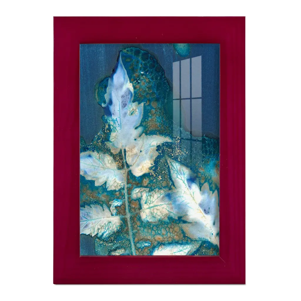 Cyanotype Leaves II -EZ SWITCH Framed Print w/glass-Cherry Red A delightful, framed print. Featuring a solid wood frame with real wood glass. This premium print is giclee quality. In addition, every frame features a removable back and table top stand. This allows you to change your art in the future or to just stand the art on a table for a new look. We are sure you'll enjoy our new series of EZ SWITCH Framed Art. Solid Wood Frame Real Glass Removable / Replaceable Art Built in Tabletop Stand Sizes range from 4x6 up to 12x15 - buy just one or pair them up as sets as you see fit.