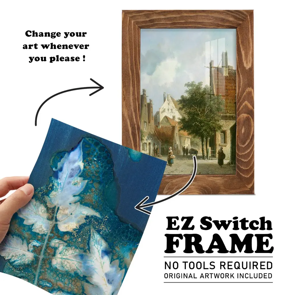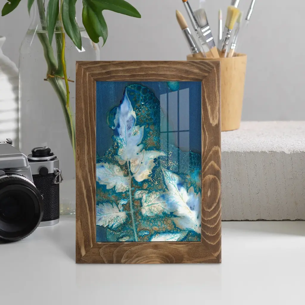 Cyanotype Leaves II -EZ SWITCH Framed Print w/glass-Cherry Red A delightful, framed print. Featuring a solid wood frame with real wood glass. This premium print is giclee quality. In addition, every frame features a removable back and table top stand. This allows you to change your art in the future or to just stand the art on a table for a new look. We are sure you'll enjoy our new series of EZ SWITCH Framed Art. Solid Wood Frame Real Glass Removable / Replaceable Art Built in Tabletop Stand Sizes range from 4x6 up to 12x15 - buy just one or pair them up as sets as you see fit.