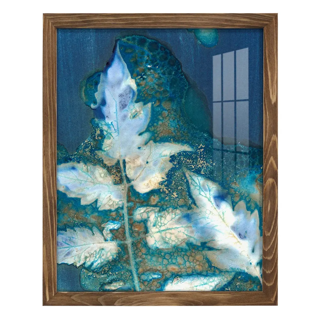 Cyanotype Leaves Ii -Framed Print W/glass-Cherry Red - 12x15 - Yellow