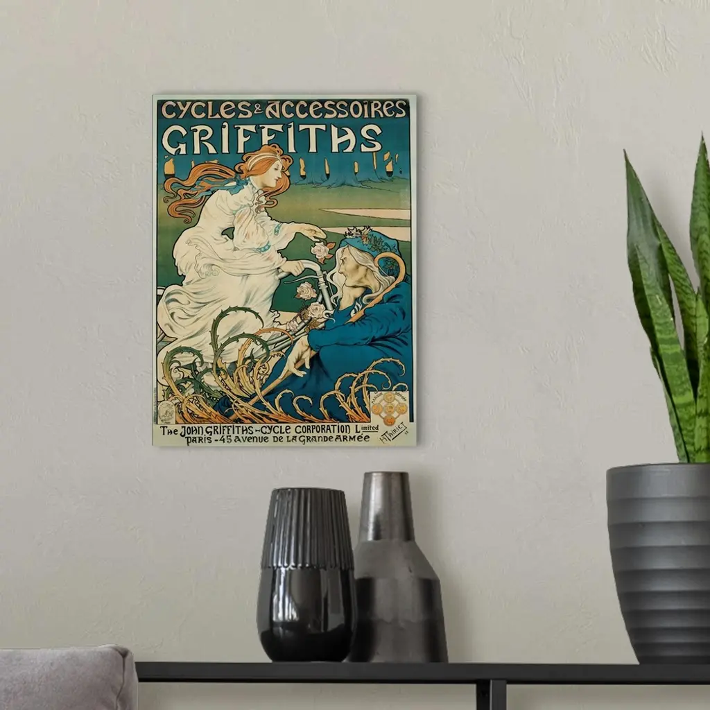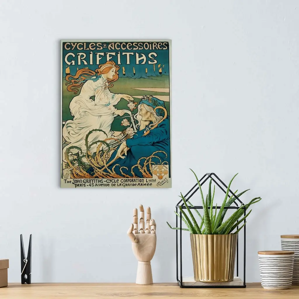 Cycles Et Accessoires Griffiths Poster By Henri Thiriet wall art for home and office decor. Discover canvas art prints, photos, mural, big canvas art and framed wall art in GreatBigCanvas.com's varied collections.