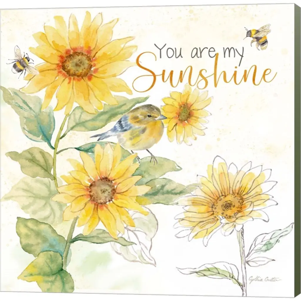Be My Sunshine IV by Cynthia Coulter is a high quality piece of canvas artwork. The finished size of this piece is 12" X 12", and it has a depth 1.5" with sage green painted sides. There is a UV protective coating over the entire image, and it is ready to hang on your wall with a standard drywall screw (not included). 100% Satisfaction Guaranteed.