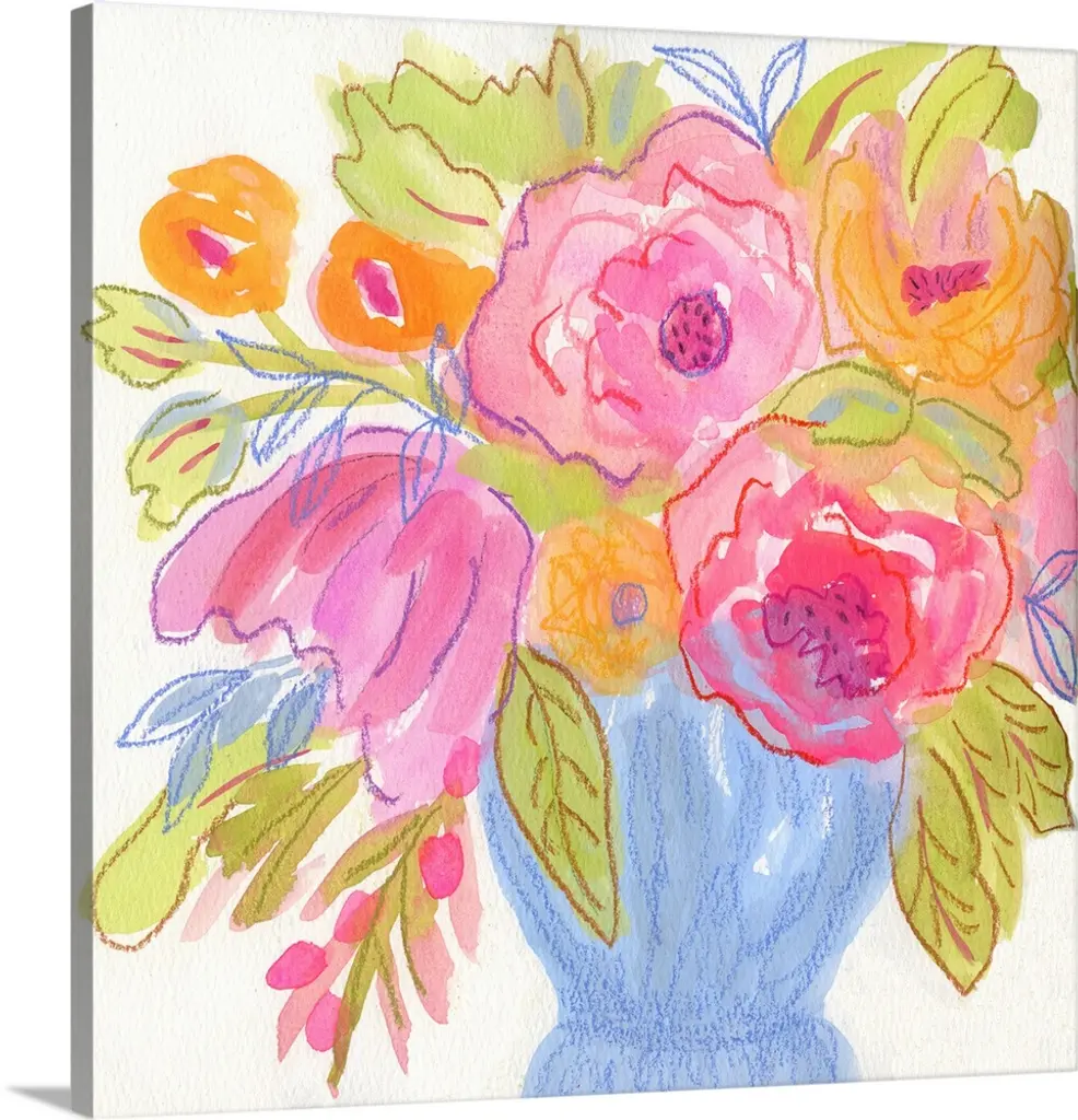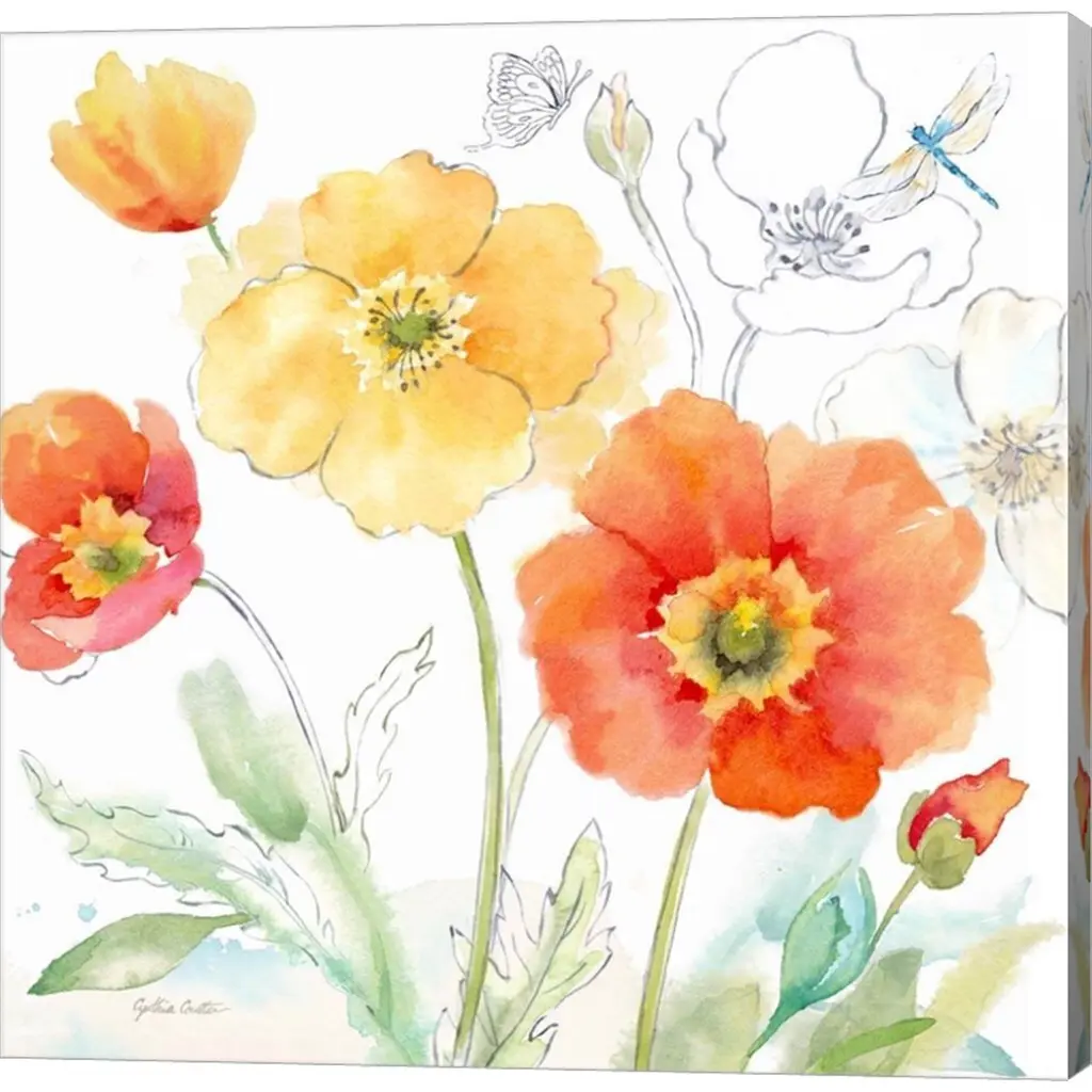 Happy Poppies IV by Cynthia Coulter is a high quality piece of canvas artwork. The finished size of this piece is 12" X 12", and it has a depth 1.5". There is a UV protective coating over the entire image, and it is ready to hang on your wall with a standard drywall screw (not included). 100% Satisfaction Guaranteed.