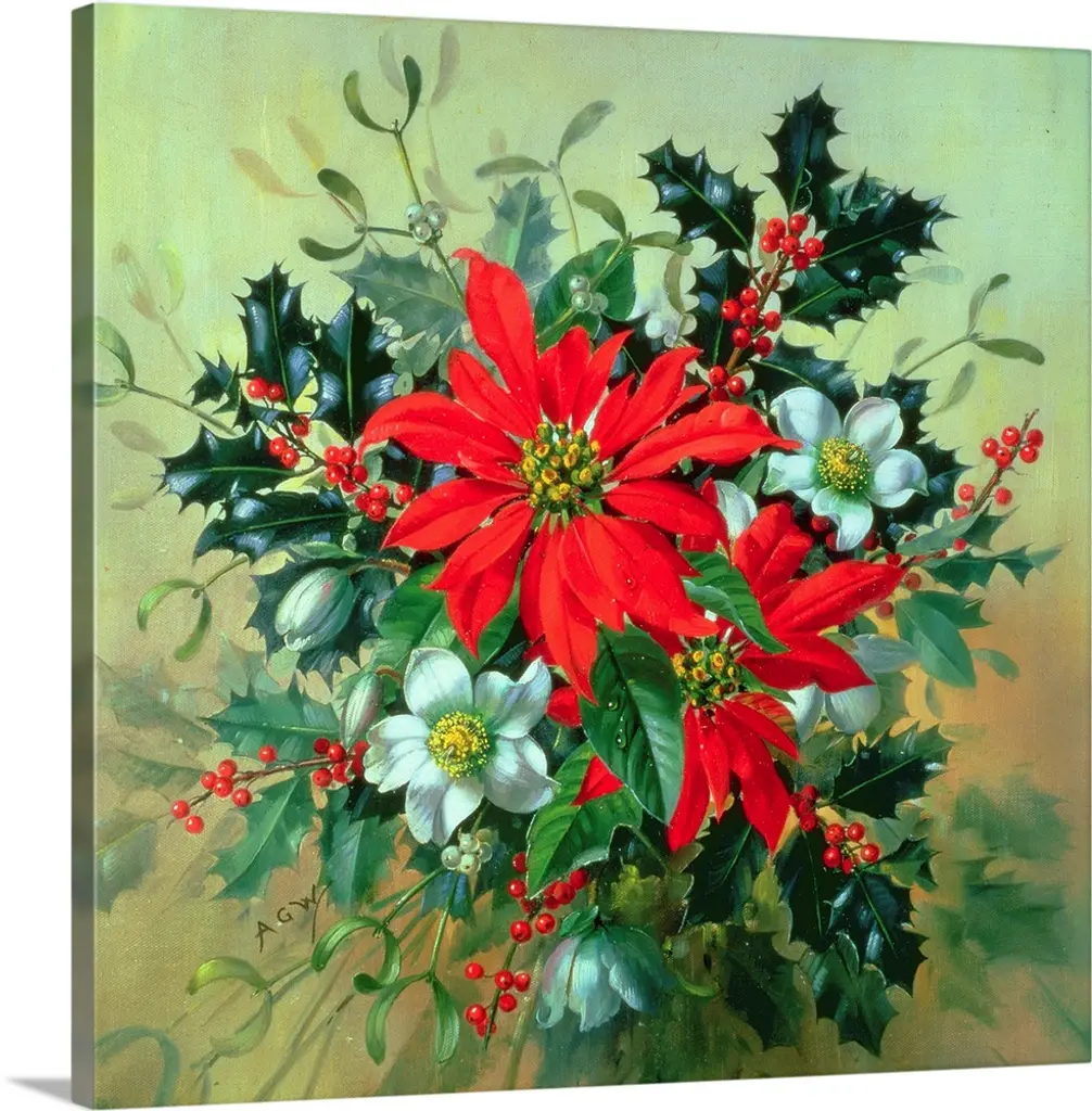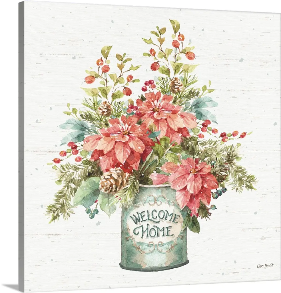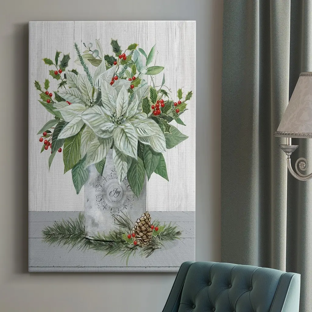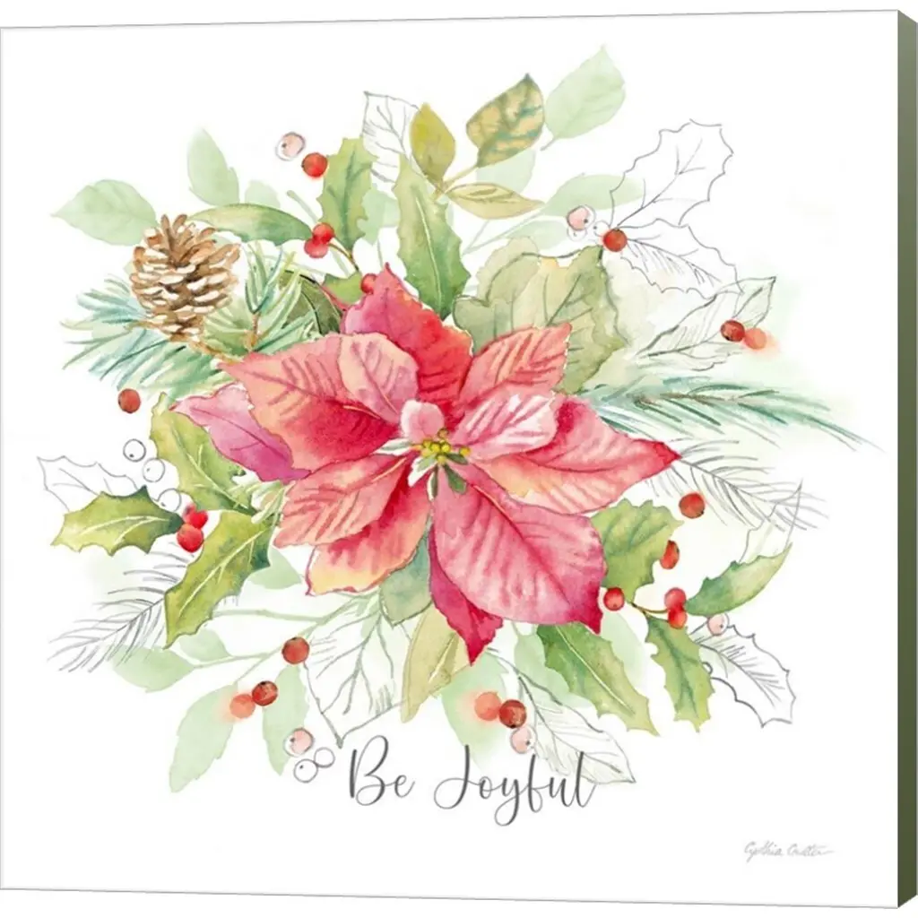 Joyful Holidays III by Cynthia Coulter is a high quality piece of canvas artwork. The finished size of this piece is 12" X 12", and it has a depth 1.5" with sage green painted sides. There is a UV protective coating over the entire image, and it is ready to hang on your wall with a Standard Drywall Screw (not included. 100% Satisfaction Guaranteed.