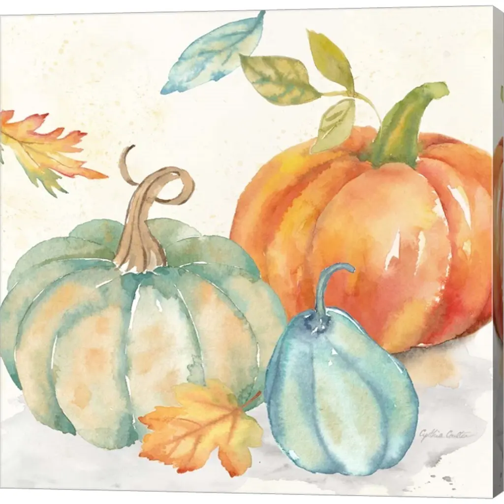 Pumpkin Patch II by Cynthia Coulter is a high quality piece of canvas artwork. The finished size of this piece is 12" X 12", and it has a depth 1.5". There is a UV protective coating over the entire image, and it is ready to hang on your wall with a Standard Drywall Screw (not included. 100% Satisfaction Guaranteed.