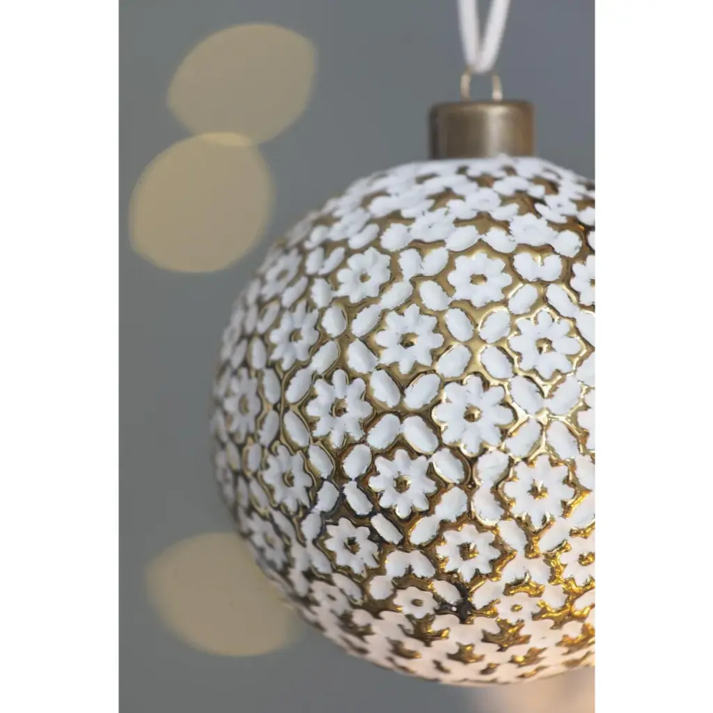 Transform your holiday decor with these stunning Glass Christmas Ball Ornaments, designed to add elegance and charm to your Christmas tree and festive gatherings. Crafted from high-quality glass, these ornaments offer a timeless appeal, with a shimmering finish that catches the light beautifully. Perfect for enhancing your holiday ambiance, these decorative balls effortlessly complement any theme, from traditional to modern. Whether you're adorning your tree, creating a centerpiece, or decorating for a holiday party, these ornaments bring a touch of sophistication and festive cheer to your celebrations.Set of 6Measuring 3.9"H x 3.9"W x 3.9"D, each piece is an ideal size to adorn your Christmas tree, hang from a strong, secure garland, or serve as an irresistible backdrop at a wedding or festive themed event.Display this eye-catching decorative accent piece to fit and enhance any decor style.Creates a classic-yet-modern foundation for your holiday decor collectionProduct Details: Glass,Painting