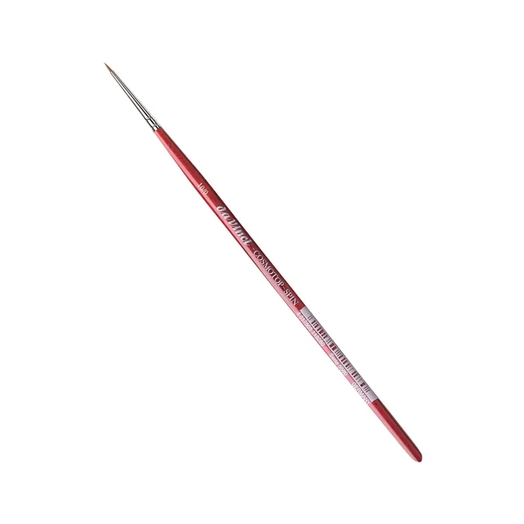 da Vinci COSMOTOP-SPIN Silkpainting Brush, Synthetic, Watercolor, Round, Size -10 | COSMOTOP-SPIN synthetics are great for watercolor, gouache, acrylic & ink. Spin holds more water than any other synthetic with a blend of 5 different diameters of extra smooth fiber ensuring the highest color-absorption of any synthetic brush. It has a sturdy construction and will retain its shape. Beautiful lacquered red handles and nickel-plated brass ferrules are rust proof. Hexagonal handles prevent the brush from rolling away. Certified green manufacturing with sustainable wood handles. Handmade in Germany at our family-owned factory since 1890.