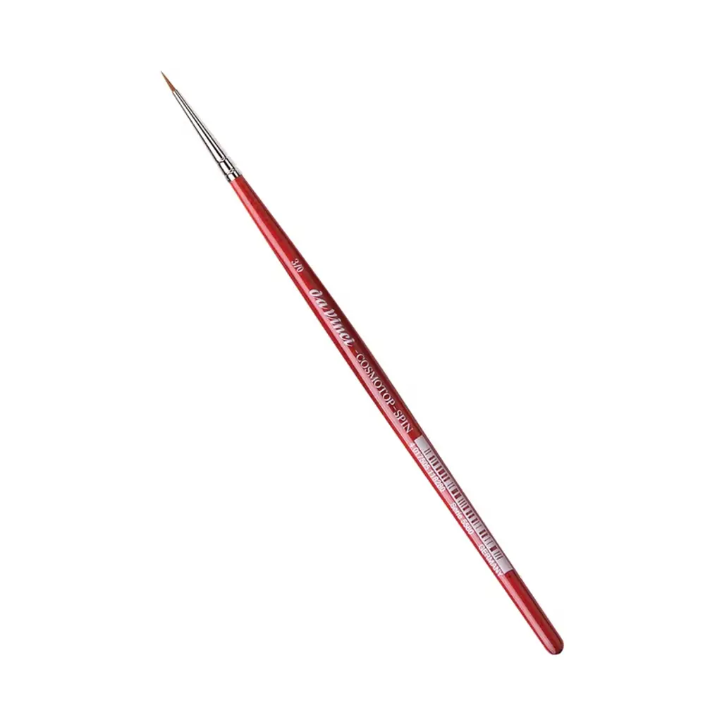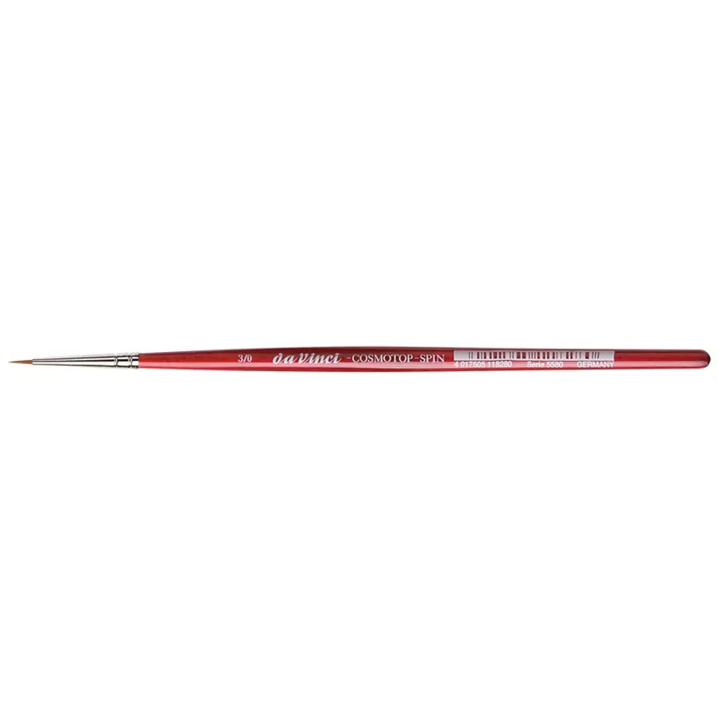 da Vinci COSMOTOP-SPIN Silkpainting Brush, Synthetic, Watercolor, Round, Size -3 | COSMOTOP-SPIN synthetics are great for watercolor, gouache, acrylic & ink. Spin holds more water than any other synthetic with a blend of 5 different diameters of extra smooth fiber ensuring the highest color-absorption of any synthetic brush. It has a sturdy construction and will retain its shape. Beautiful lacquered red handles and nickel-plated brass ferrules are rust proof. Hexagonal handles prevent the brush from rolling away. Certified green manufacturing with sustainable wood handles. Handmade in Germany at our family-owned factory since 1890.