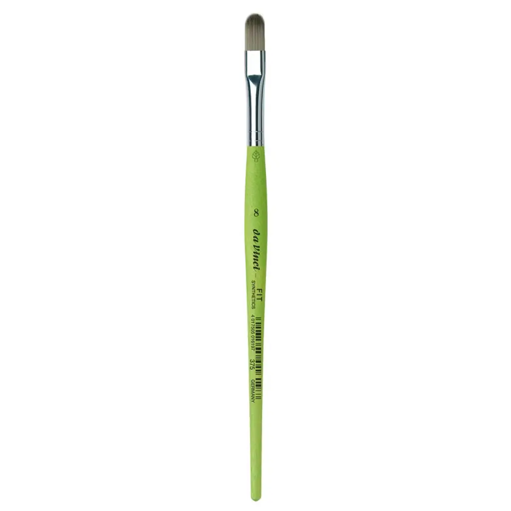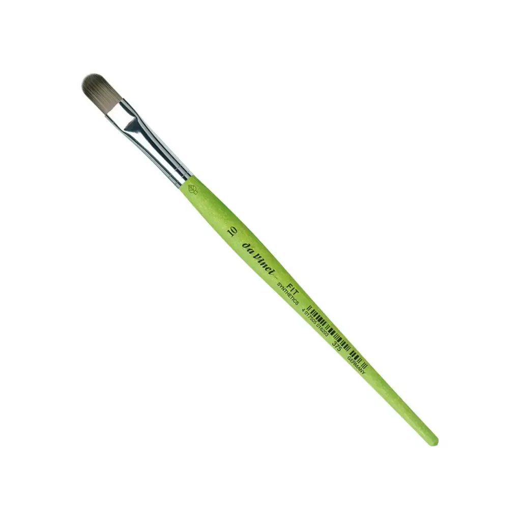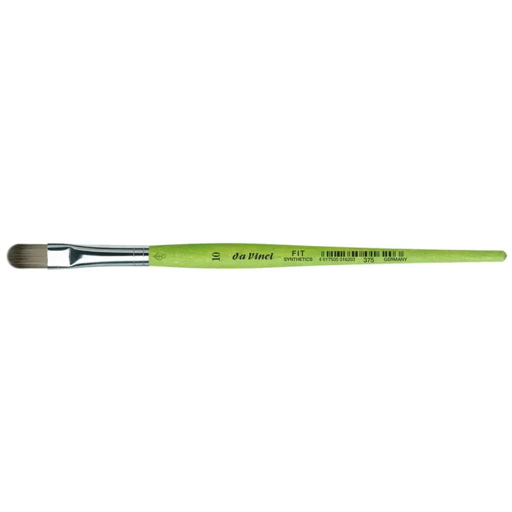 da Vinci FIT Synthetics Student Brush, Synthetic, Acrylic & Tempera, Filbert, Series 375, Size 10 | Thanks to a specifically developed, flexible, grey synthetic fiber we have created a hobby and school painting brush, which fascinates not only by its interesting look but also by its attractive price. This innovative product offers better performance than the traditional school brush with natural hair when it comes to stroke control and color absorbing capacity. The brush features a green, matte handle with seamless, rust-proof aluminum ferrules. Made in Germany. 100% Vegan.