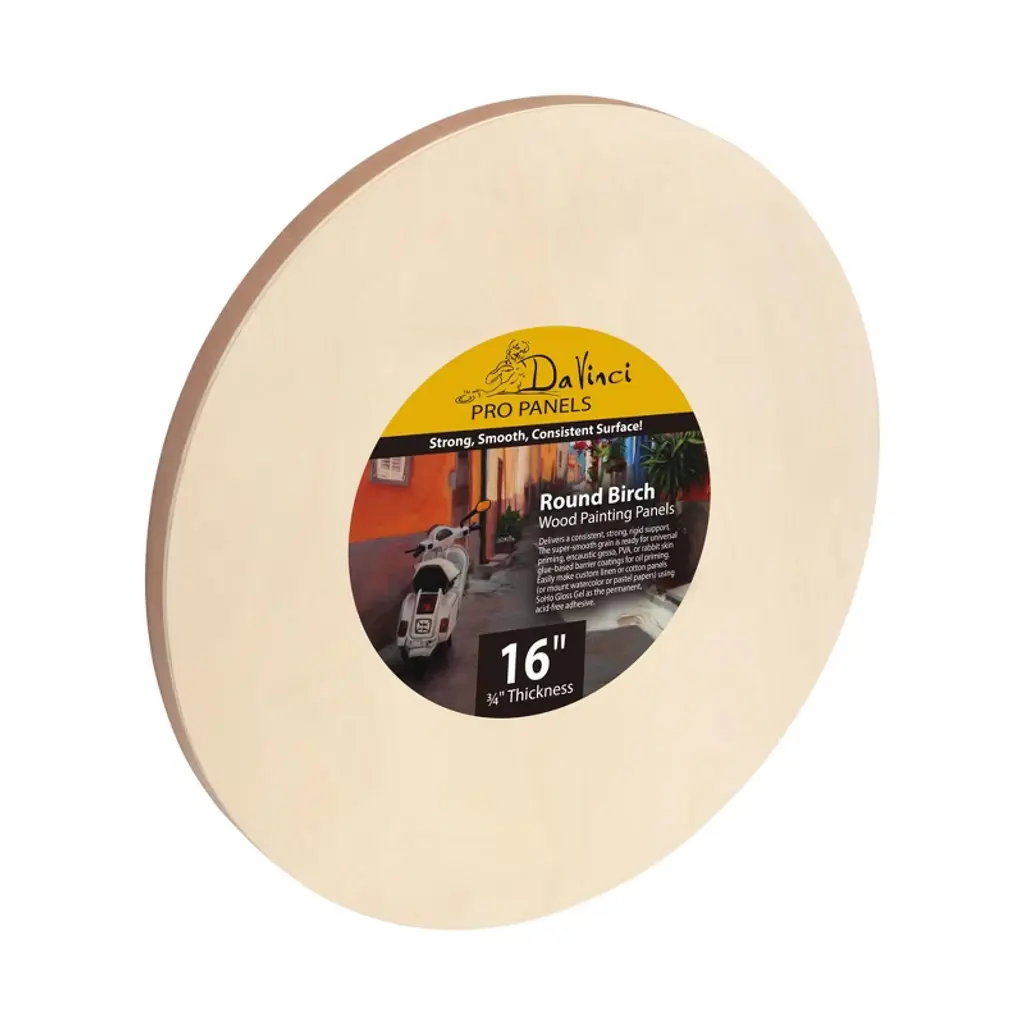 Introducing the Da Vinci Pro Birch Wood Panel, a premium substrate designed for artists who demand precision and durability in their work. This 3/4" deep wood canvas board is engineered to deliver a superior painting experience, offering a perfect balance of light weight and exceptional strength. Crafted with a kiln-dried New Zealand Pine cradle and a fine Birch panel, this wood canvas panel is warp resistant, ensuring your artwork remains true to its original form over time. The finely sanded surface of these flat wood panels for painting provides a smooth texture that requires no additional preparation before base coating. This feature allows artists to dive straight into their creative process, whether using acrylics, oils, or mixed media. The archival substrate of the Da Vinci Pro Birch Wood Panel ensures the longevity of your work, maintaining the vibrancy and integrity of your colors. Our wood panel is not only tougher than traditional round canvas but also eliminates the risk of sagging, offering a firm and reliable surface that remains stable for years. The ecological sourcing of the wood, derived from fast-growth forests, reflects a commitment to sustainability without compromising on performance. For artists seeking versatility, the Da Vinci Pro Birch Wood Panel can be used unframed or framed, adapting seamlessly to your display requirements. It is ideal for mounting sanded pastel or watercolor paper, providing a robust base for detailed works. Additionally, the panel supports the mounting of linen or canvas, offering a customizable foundation for a wide range of projects. The cradle board design ensures that these wooden canvas boards for painting remain a steadfast choice for both amateur and professional artists. Experience the difference with Da Vinci Pro, where fine art meets impeccable craftsmanship, transforming your artistic vision into enduring masterpieces.