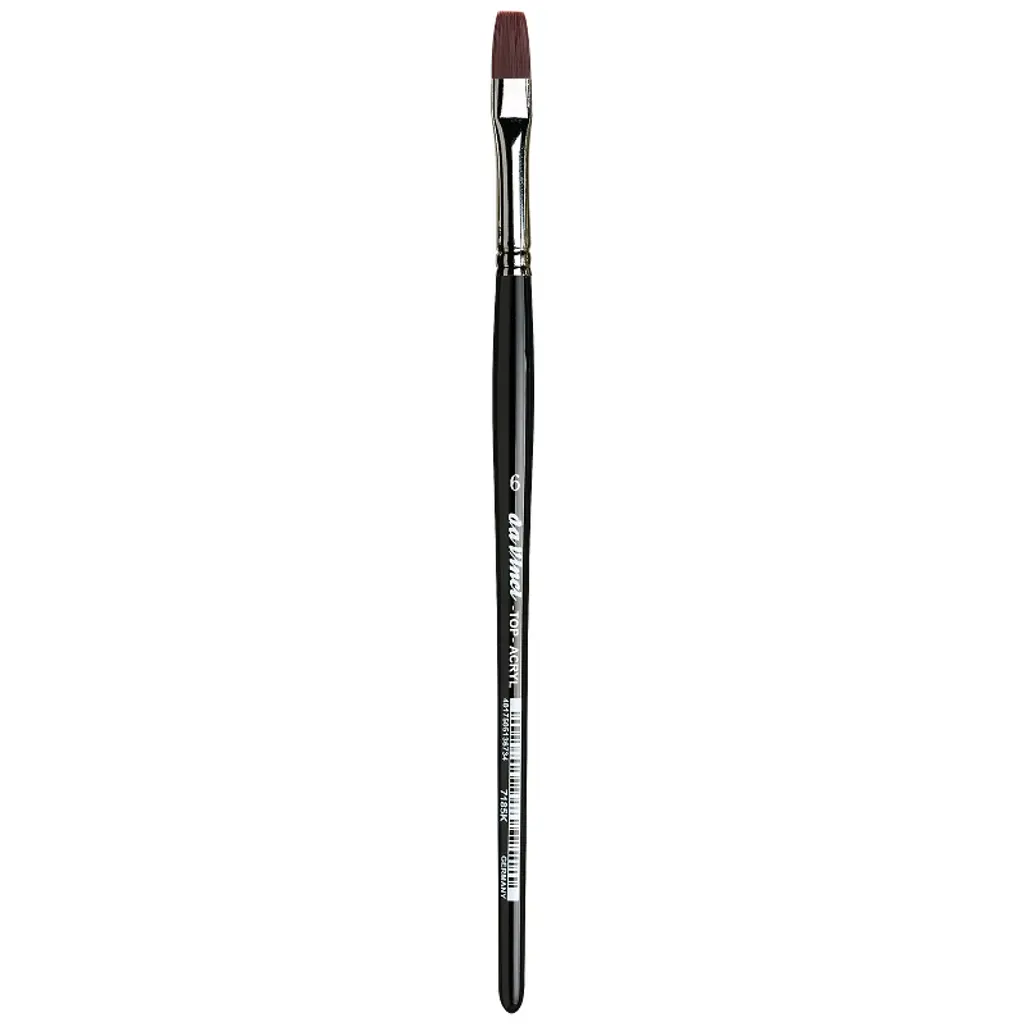 da Vinci TOP-ACRYL Bright Red-Brown Brush, Synthetic, Acrylic & Oil, Flat, Series 7185K, Size 1, Pack of 3 | Extra strong and stiff for acrylics, oils & water-mixable oils TOP-ACRYL is constructed with 5 different diameters of extra strong Synthetic Bristle. Short "no-roll" handles fit right in your smaller painting box or travel easel. Exclusive design developed by da Vinci. Extra stiff with a precise snap, and a favorite of Impasto painters (who use thick applications of paint). Whether massing color in the larger sizes or precision painting in the smaller sizes, TOP-ACRYL brushes offer the artist versatility and ruggedness. This brush features short, black, polished, hexagonal handles that prevent the brush from rolling away and the hand from getting tired during painting. Sold as a pack of 3.