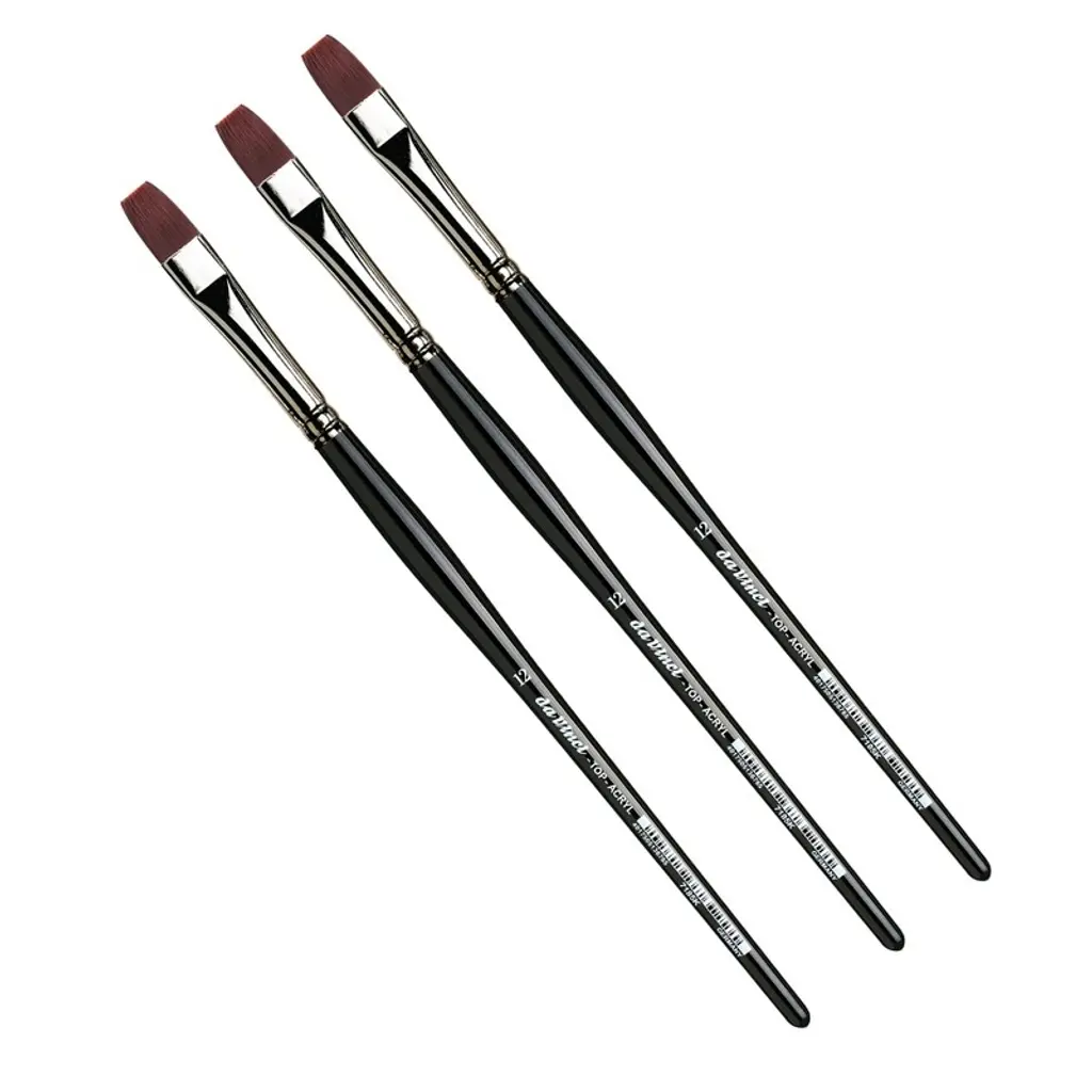 Da Vinci Top-acryl Bright Red-brown Brush, Synthetic, Acrylic & Oil, Flat, Series 7185k, Size 1, Pack Of 3