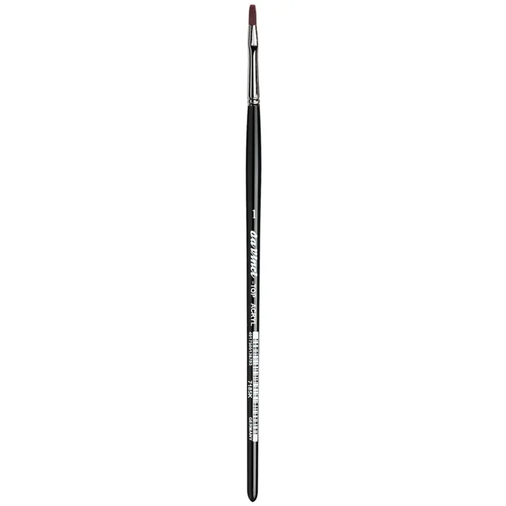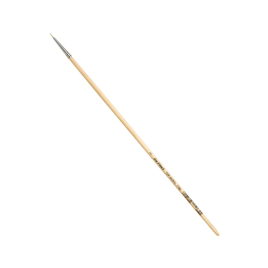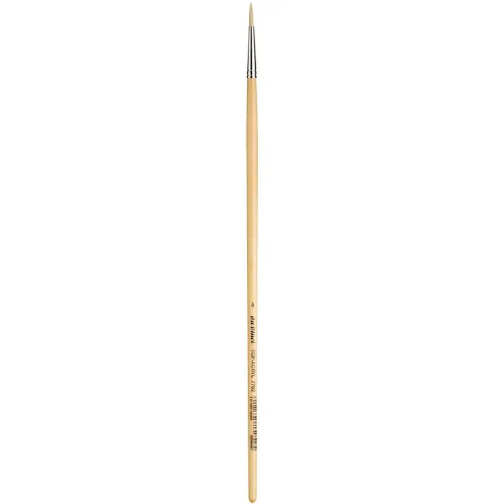 da Vinci TOP-ACRYL White Brush, Synthetic, Acrylic & Oil, Round, Series 7782, Size 1 | Extra strong and stiff for acrylics, oils & water-mixable oils TOP-ACRYL is constructed with 5 different diameters of extra strong Synthetic Bristle. Long handles fit right in your painting box or travel easel. Exclusive design developed by da Vinci. Extra stiff with a precise snap, and a favorite of Impasto painters (who use thick applications of paint). Whether massing color in the larger sizes or precision painting in the smaller sizes, TOP-ACRYL brushes offer the artist versatility and ruggedness. The brush features a long, natural, polished handle.