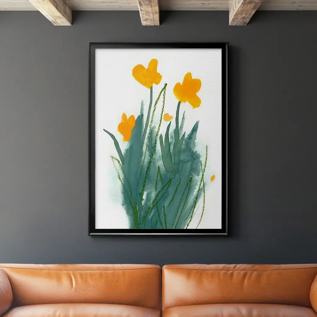 Daffodil Bunch I Premium Framed Print - Ready to Hang A Premium Framed Print created to last. Framed in distressed wood and available in an array of sizes and colors Featuring a beveled a solid wood stretcher bar, each piece comes ready to hand 4 SIZES AVAILABLE 30.5''X42.5'' - Overall Size 26.5'X36.5'' - Overall Size 22.5''x30.5'' - Overall Size 18.5''x24.5'' - Overall Size Each piece is made to order. Each piece comes with hanging hardware. Made in the USA Ready to Hang