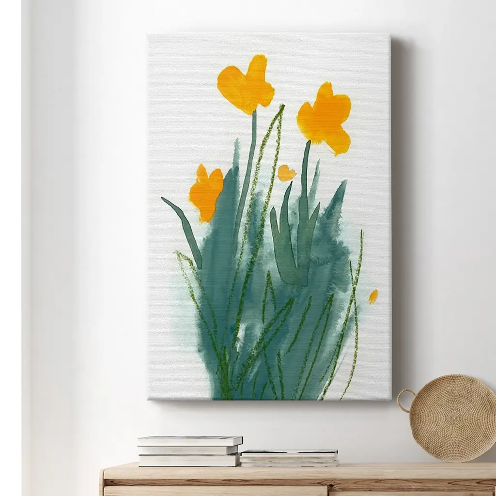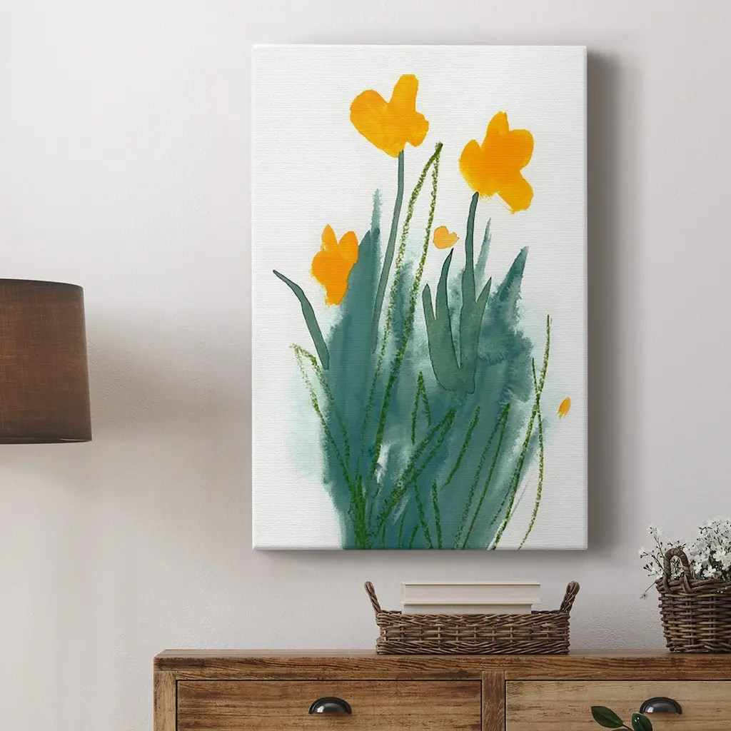 Daffodil Bunch I Premium Gallery Wrapped Canvas - Ready to Hang A premium hand stretched gallery wrapped canvas print created to last. Featuring a beveled a solid wood stretcher bar, each piece comes ready to hand 6 SIZES AVAILABLE 8''X12'' - Overall Size 12''X18'' - Overall Size 18''X27'' - Overall Size 24''x36'' - Overall Size 32''x48'' - Overall Size 40''x60'' - Overall Size Each piece is made to order. Built to Last Each piece comes ready to hang Solid wood stretcher Fade and Water resistant Made domestically