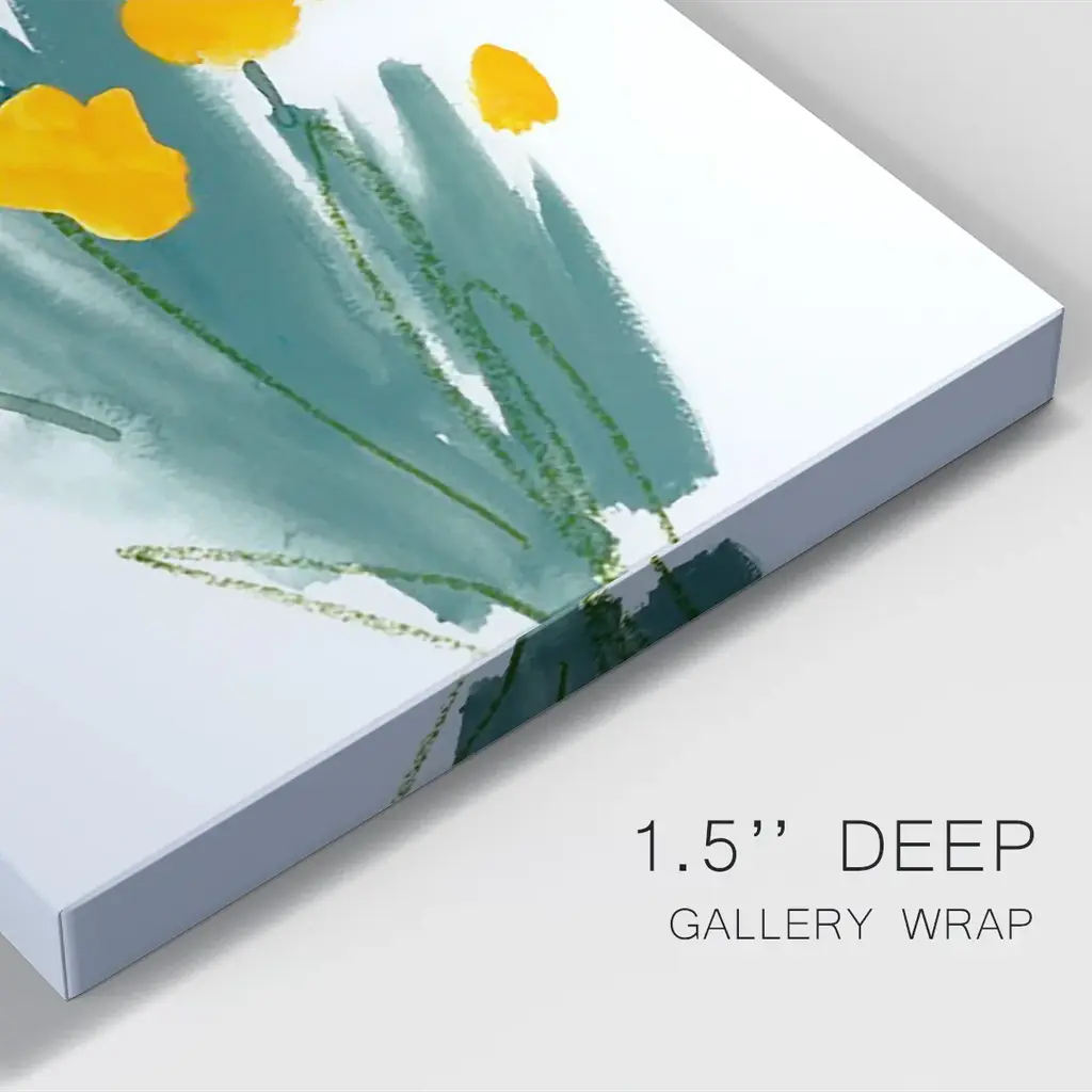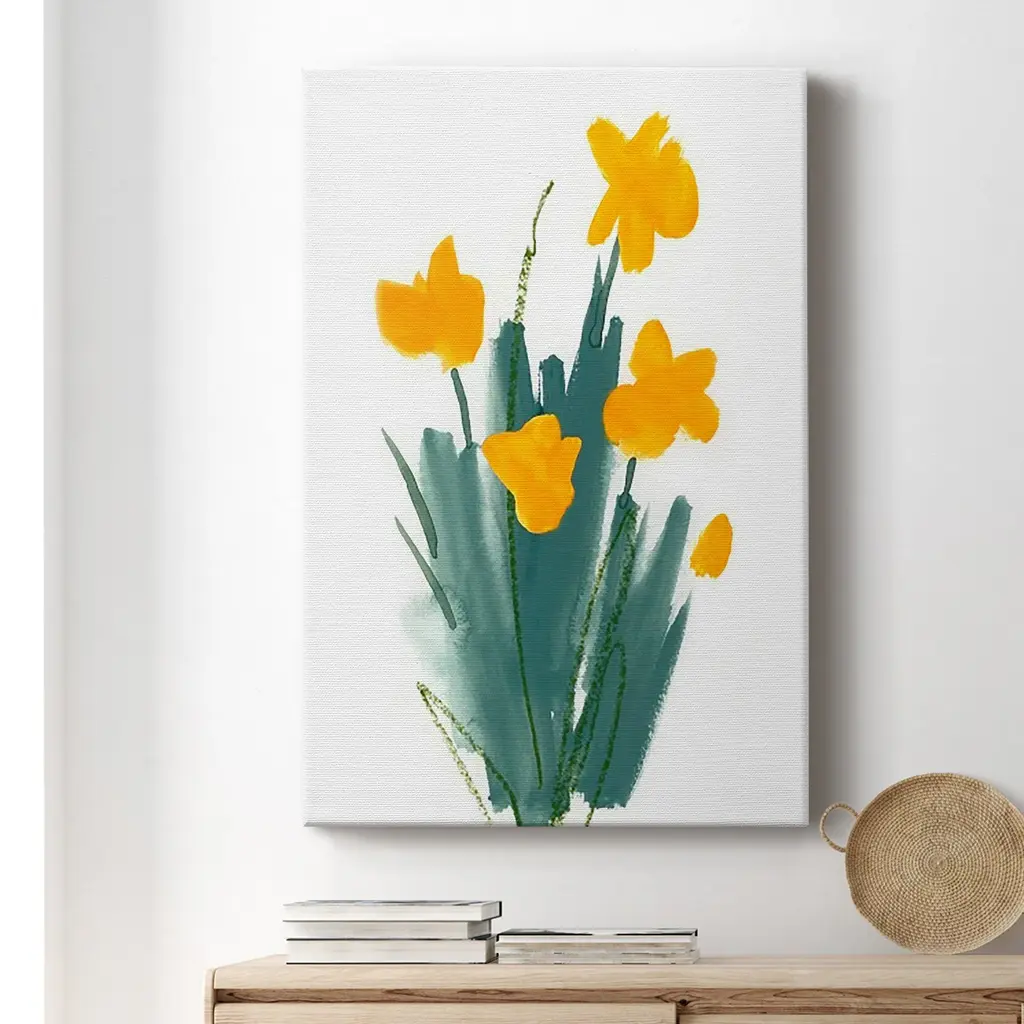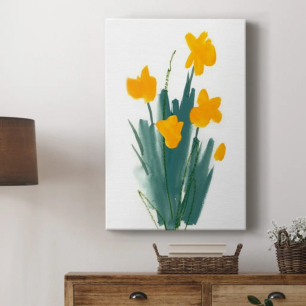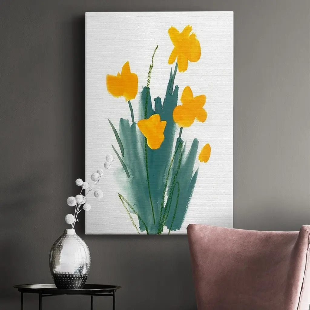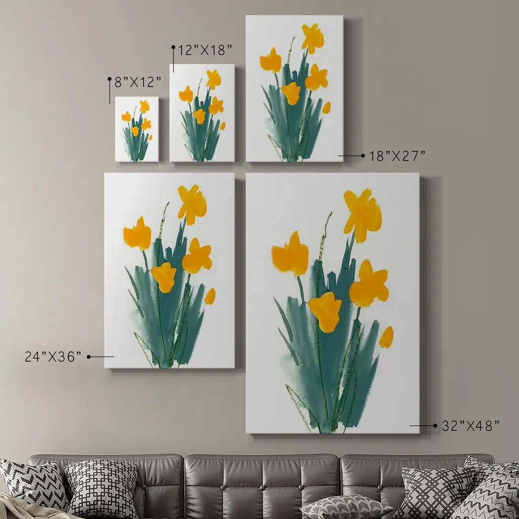 Daffodil Bunch II Premium Gallery Wrapped Canvas - Ready to Hang A premium hand stretched gallery wrapped canvas print created to last. Featuring a beveled a solid wood stretcher bar, each piece comes ready to hand 6 SIZES AVAILABLE 8''X12'' - Overall Size 12''X18'' - Overall Size 18''X27'' - Overall Size 24''x36'' - Overall Size 32''x48'' - Overall Size 40''x60'' - Overall Size Each piece is made to order. Built to Last Each piece comes ready to hang Solid wood stretcher Fade and Water resistant Made domestically