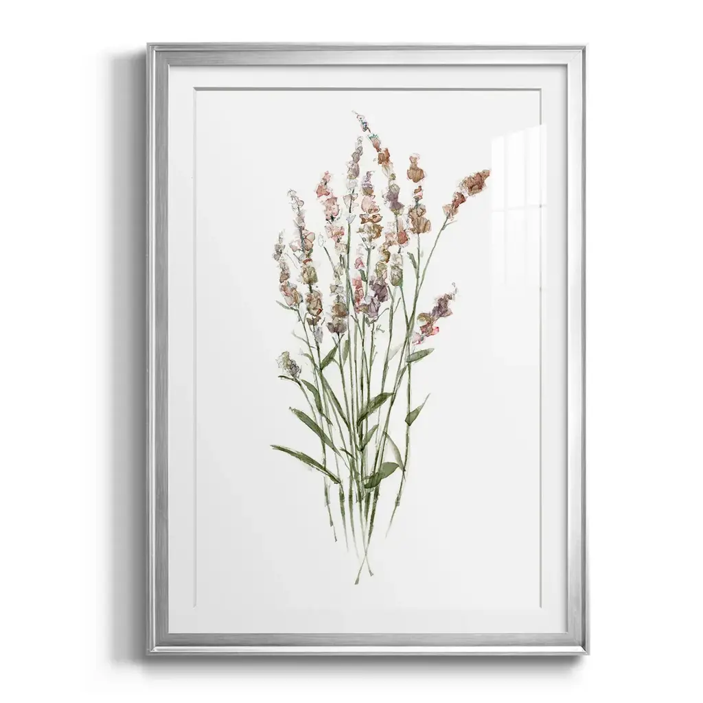 Dainty Botanical II Premium Framed Print - Ready to Hang A Premium Framed Print created to last. Framed in distressed wood and available in an array of sizes and colors Featuring a beveled a solid wood stretcher bar, each piece comes ready to hand 4 SIZES AVAILABLE 30.5''X42.5'' - Overall Size 26.5'X36.5'' - Overall Size 22.5''x30.5'' - Overall Size 18.5''x24.5'' - Overall Size Each piece is made to order. Each piece comes with hanging hardware. Made in the USA Ready to Hang Giclee Paper Print Acrylic Glass Beveled Matt Board