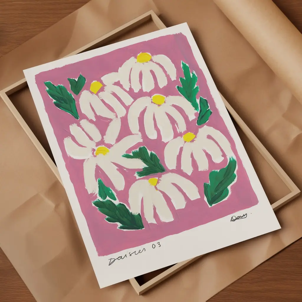 Daisies Art Print - A2Hand painted by Natalie and made into a beautiful print, this print is a perfect addition to any home decor. Smooth fine art 230 gsm matte card. Printed with vivid colour and detail. Sold without a frame.