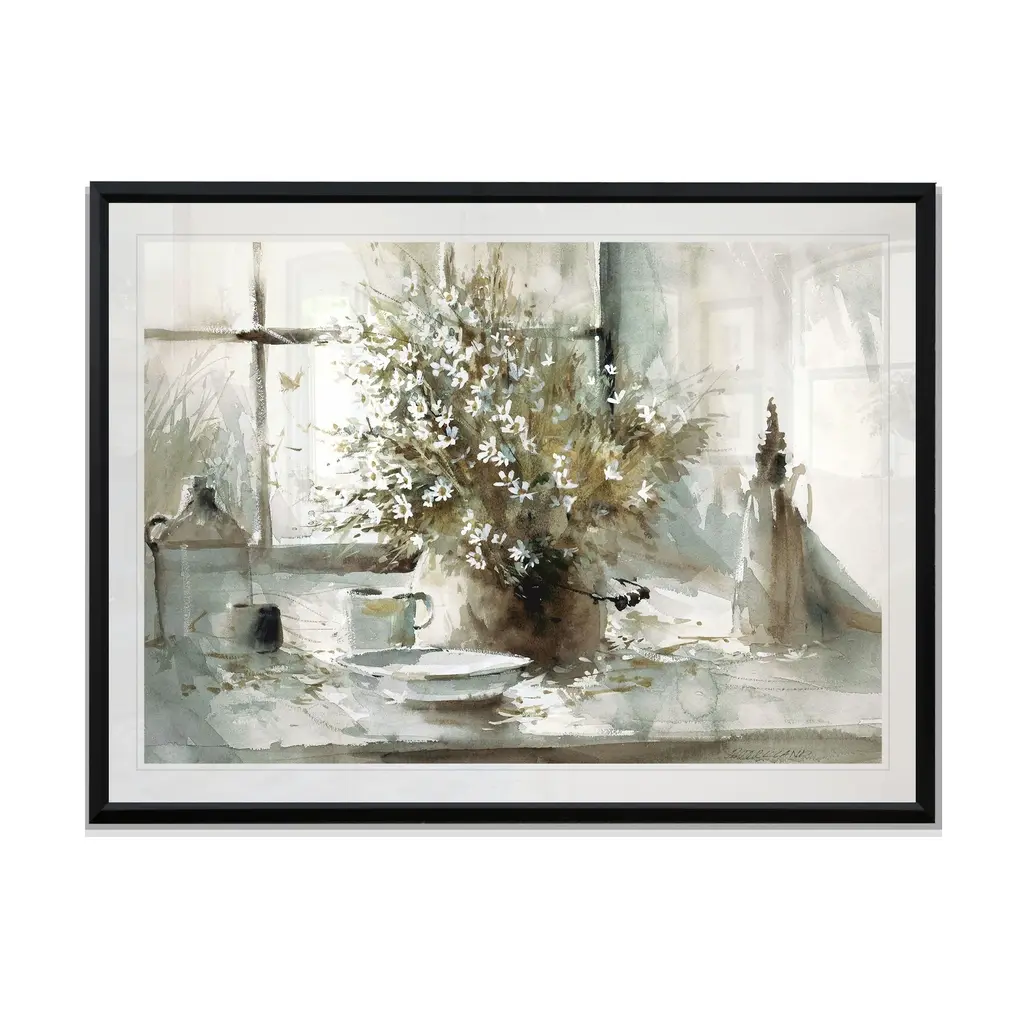 Daisy Still Life-Framed Giclee Print A premium framed giclee print Printed using the last archival inks. Each print is carefully printed and framed by hand. Each piece features a 2'' Beveled matt board, acrylic glass and comes ready to hand. 4 SIZES AVILABLE 18''X24''- Overall Size 22''x30''- Overall Size 26''x26''' - Overall Size 30''x42''' - Overall Size ** Overall size may vary slightly from piece to piece Each piece is made to order. Built to Last Each piece comes ready to hang Archival Ink 2'' Matt Board Assembled by hand in the America
