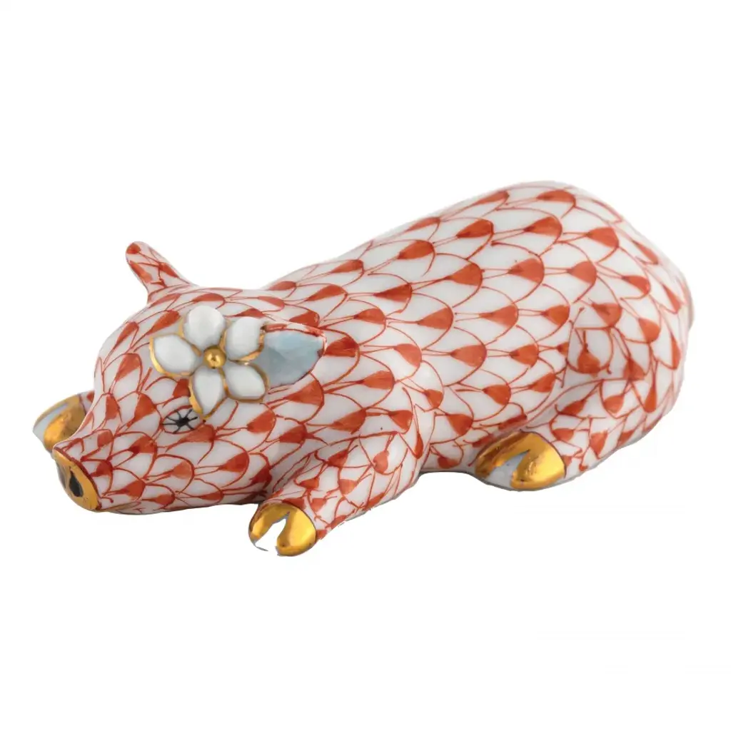 Endearing animals meek and bold, large and small, demure and majestic eagerly await the chance to melt your heart and warm your home. Each is brought to life by the skilled hands of artisans crafting and painting these charming porcelain creatures. The famous fishnet decor adorning many of the animals took form in 1858 when a Herend painter became inspired by a fishscale design he saw on a Chinese porcelain plate and painted a similar pattern onto a rooster figurine to imitate feathers. The rest is history, with the fishnet design now a Herend signature prized worldwide. Now the biggest porcelain manufactory in Europe, Herend was founded in 1826 to produce earthenware in the small Hungarian village for which it was named. At the time, Hungary was flooded with low-cost pottery, but in 1839, Mor Fischer became the Manufactory’s new owner and he decided to focus on producing dinnerware replacement pieces for Europe’s royal families to complement their valuable porcelain patterns from Germany and the Far East. As his client base grew, Fischer commissioned his artists to begin designing dinnerware patterns of their own. Queen Victoria’s 1851 purchase of a large set for Windsor Castle was a milestone, setting the stage for aristocrats throughout Europe to clamor for Herend in their estates. In the 1850s, Herend added meticulously-crafted figurines to its creations. Herend’s trademark fishnet pattern, which is widely recognized and prized as Herend’s signature design, started in 1858 when an artist who was intrigued with a Chinese plate’s fish scale design painted it onto a rooster figurine to imitate feathers.