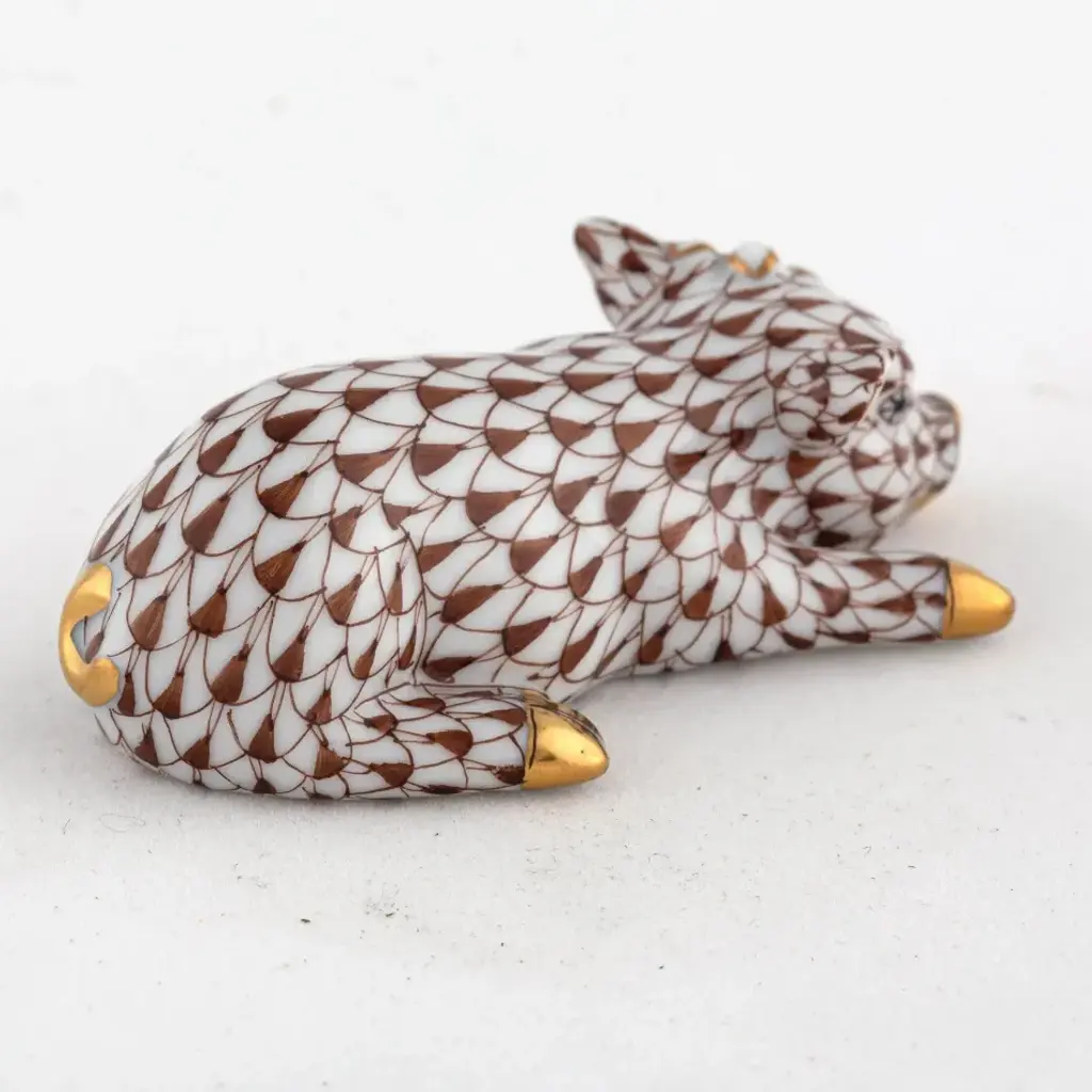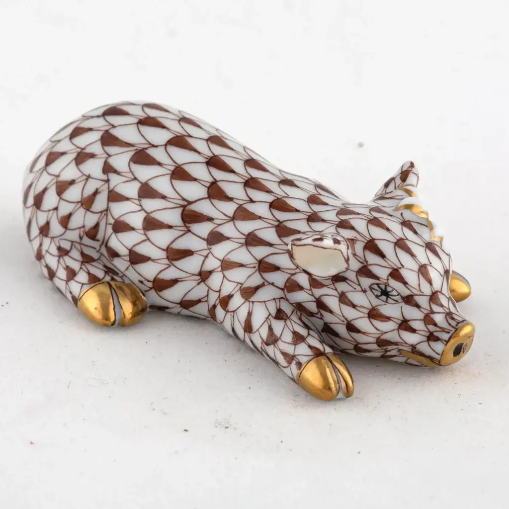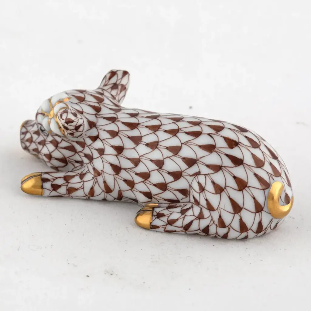 Endearing animals meek and bold, large and small, demure and majestic eagerly await the chance to melt your heart and warm your home. Each is brought to life by the skilled hands of artisans crafting and painting these charming porcelain creatures. The famous fishnet decor adorning many of the animals took form in 1858 when a Herend painter became inspired by a fishscale design he saw on a Chinese porcelain plate and painted a similar pattern onto a rooster figurine to imitate feathers. The rest is history, with the fishnet design now a Herend signature prized worldwide. Now the biggest porcelain manufactory in Europe, Herend was founded in 1826 to produce earthenware in the small Hungarian village for which it was named. At the time, Hungary was flooded with low-cost pottery, but in 1839, Mor Fischer became the Manufactory’s new owner and he decided to focus on producing dinnerware replacement pieces for Europe’s royal families to complement their valuable porcelain patterns from Germany and the Far East. As his client base grew, Fischer commissioned his artists to begin designing dinnerware patterns of their own. Queen Victoria’s 1851 purchase of a large set for Windsor Castle was a milestone, setting the stage for aristocrats throughout Europe to clamor for Herend in their estates. In the 1850s, Herend added meticulously-crafted figurines to its creations. Herend’s trademark fishnet pattern, which is widely recognized and prized as Herend’s signature design, started in 1858 when an artist who was intrigued with a Chinese plate’s fish scale design painted it onto a rooster figurine to imitate feathers.