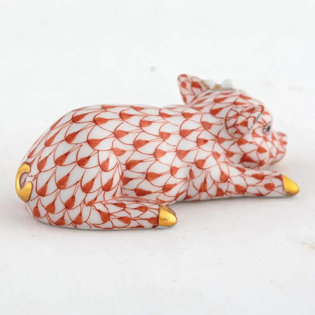 Endearing animals meek and bold, large and small, demure and majestic eagerly await the chance to melt your heart and warm your home. Each is brought to life by the skilled hands of artisans crafting and painting these charming porcelain creatures. The famous fishnet decor adorning many of the animals took form in 1858 when a Herend painter became inspired by a fishscale design he saw on a Chinese porcelain plate and painted a similar pattern onto a rooster figurine to imitate feathers. The rest is history, with the fishnet design now a Herend signature prized worldwide. Now the biggest porcelain manufactory in Europe, Herend was founded in 1826 to produce earthenware in the small Hungarian village for which it was named. At the time, Hungary was flooded with low-cost pottery, but in 1839, Mor Fischer became the Manufactory’s new owner and he decided to focus on producing dinnerware replacement pieces for Europe’s royal families to complement their valuable porcelain patterns from Germany and the Far East. As his client base grew, Fischer commissioned his artists to begin designing dinnerware patterns of their own. Queen Victoria’s 1851 purchase of a large set for Windsor Castle was a milestone, setting the stage for aristocrats throughout Europe to clamor for Herend in their estates. In the 1850s, Herend added meticulously-crafted figurines to its creations. Herend’s trademark fishnet pattern, which is widely recognized and prized as Herend’s signature design, started in 1858 when an artist who was intrigued with a Chinese plate’s fish scale design painted it onto a rooster figurine to imitate feathers.