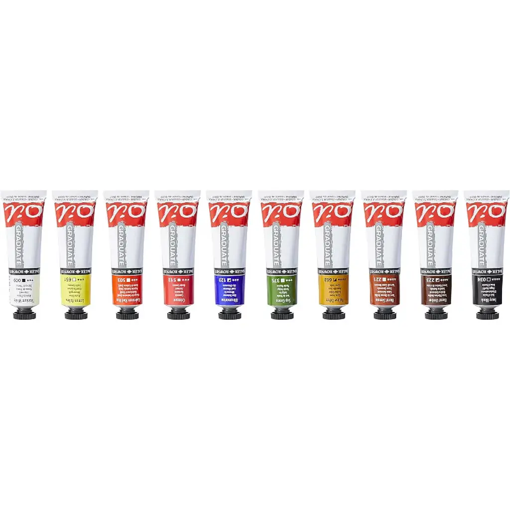 Daler-Rowney Graduate Oil Paint Set, Assorted Colors, 22ml, 12 Pieces | Daler-Rowney Graduate Oil Colors are crafted to give you a smooth, buttery feel with rich, vibrant pigments. They're super easy to mix & glide effortlessly onto your canvas, making them perfect for everything from sleek brushwork to bold, textured impasto techniques. Whether you're a beginner or a seasoned artist, these oils make it easy to create stunning, professional-quality art. Since 1783, Daler-Rowney has inspired professional artists, art students & hobbyists to embrace their creativity. We believe in producing art supplies that are sustainable, qualitative, durable, accessible & affordable. The Graduate product line is a premier collaboration between three renowned art supply brands—Canson, Lyra, and Daler-Rowney—offering a comprehensive range of high-quality art materials. Featuring an array of supplies including sketchbooks, pencils, and paints, each product is designed to enhance technical skill and artistic expression. Ideal for art students and teachers alike, the Graduate range provides the tools necessary for fostering creativity in the classroom.