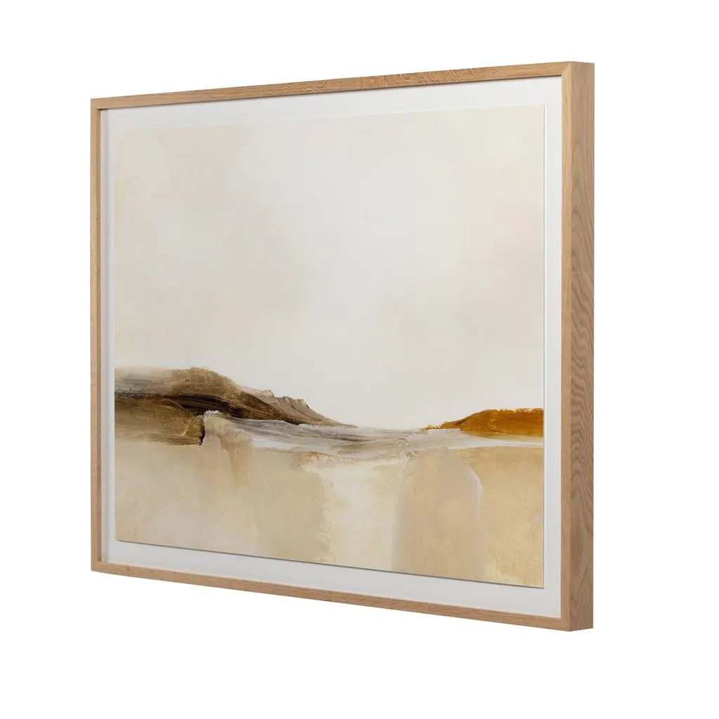 Artist Dan Hobday finds inspiration in the coastal landscapes of his hometown of Devon, England. This mountain-inspired piece is float mounted and framed for a gallery-quality look. Handmade in Austin, Texas.