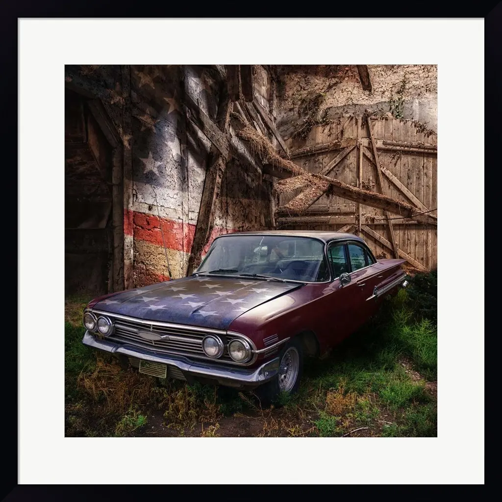 USA Rustic Classic by Dan Meneely is a high quality piece of framed artwork. The finished size of this piece is 21" x 21". It has a Petite Black with Flat Front frame, White mat and is finished with high quality Acrylic Plexiglass. 100% Satisfaction Guaranteed.