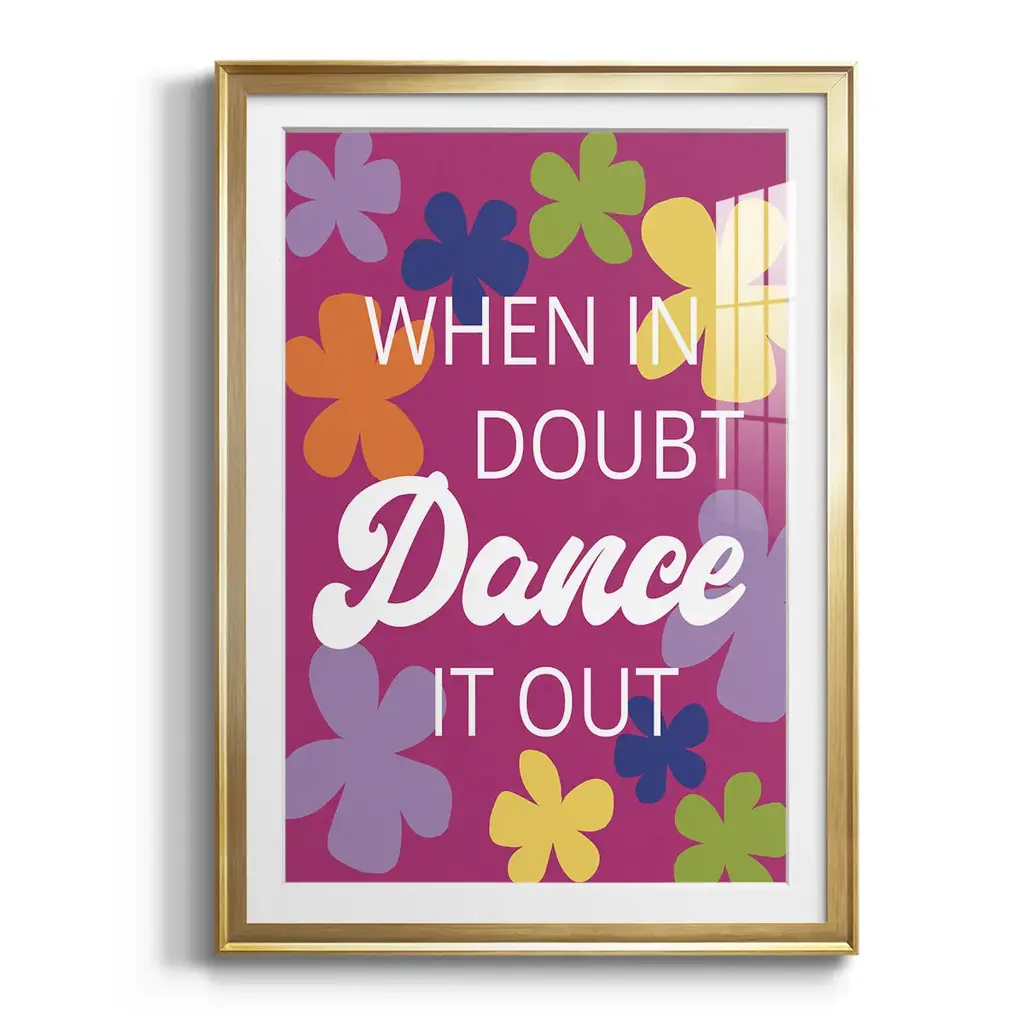 Dance It Out Premium Framed Print - Ready to Hang A Premium Framed Print created to last. Framed in distressed wood and available in an array of sizes and colors Featuring a beveled a solid wood stretcher bar, each piece comes ready to hand 4 SIZES AVAILABLE 30.5''X42.5'' - Overall Size 26.5'X36.5'' - Overall Size 22.5''x30.5'' - Overall Size 18.5''x24.5'' - Overall Size Each piece is made to order. Each piece comes with hanging hardware. Made in the USA Ready to Hang Giclee Paper Print Acrylic Glass Beveled Matt Board