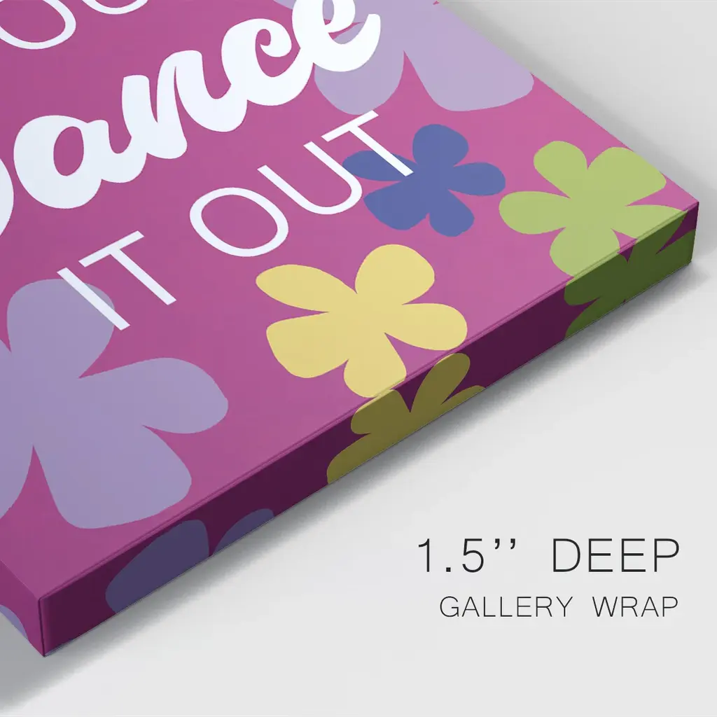 Dance It Out Premium Gallery Wrapped Canvas - Ready to Hang A premium hand stretched gallery wrapped canvas print created to last. Featuring a beveled a solid wood stretcher bar, each piece comes ready to hand 6 SIZES AVAILABLE 8''X12'' - Overall Size 12''X18'' - Overall Size 18''X27'' - Overall Size 24''x36'' - Overall Size 32''x48'' - Overall Size 40''x60'' - Overall Size Each piece is made to order. Built to Last Each piece comes ready to hang Solid wood stretcher Fade and Water resistant Made domestically