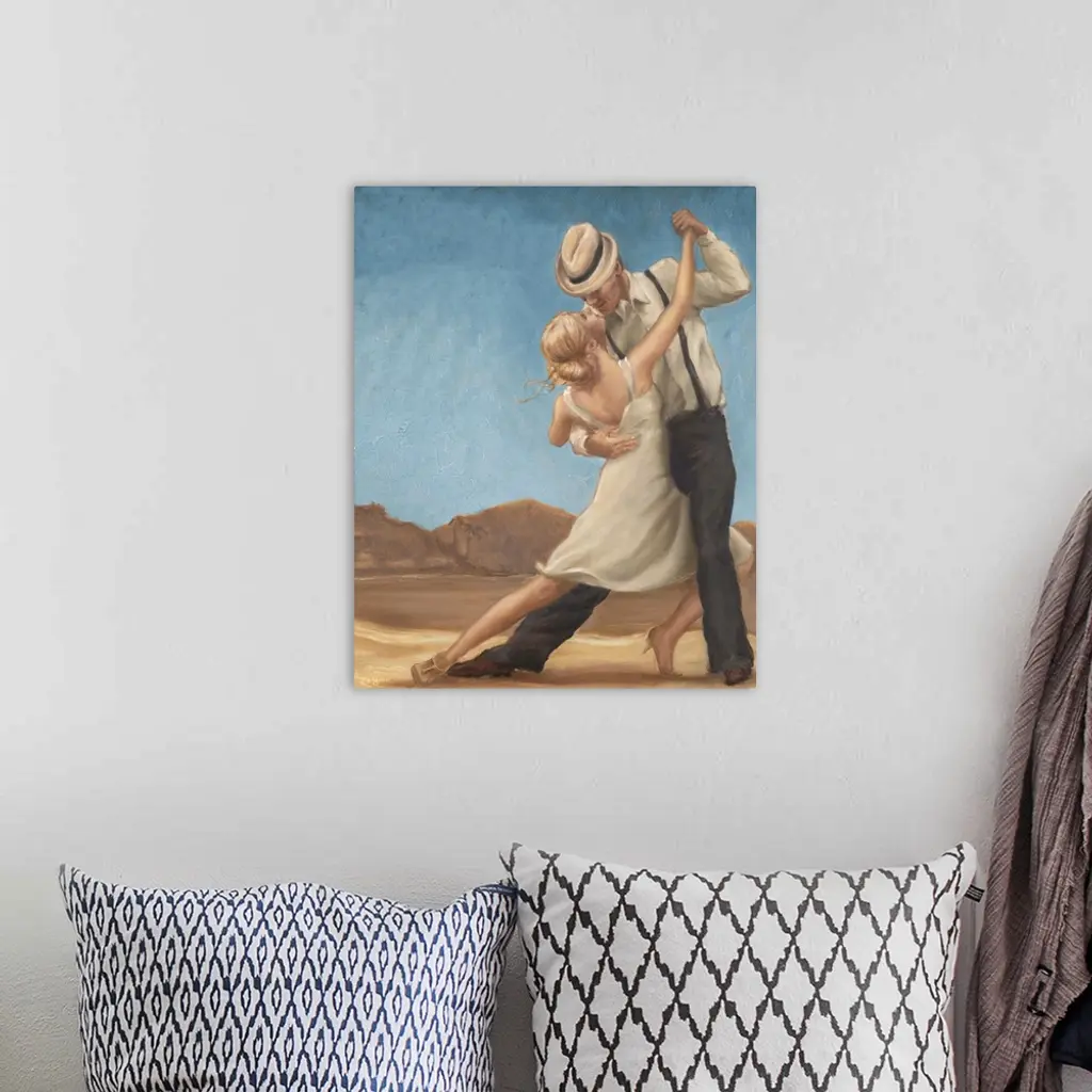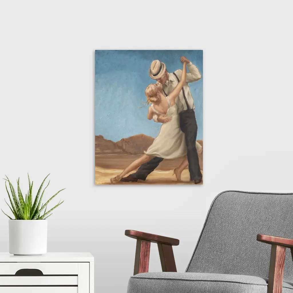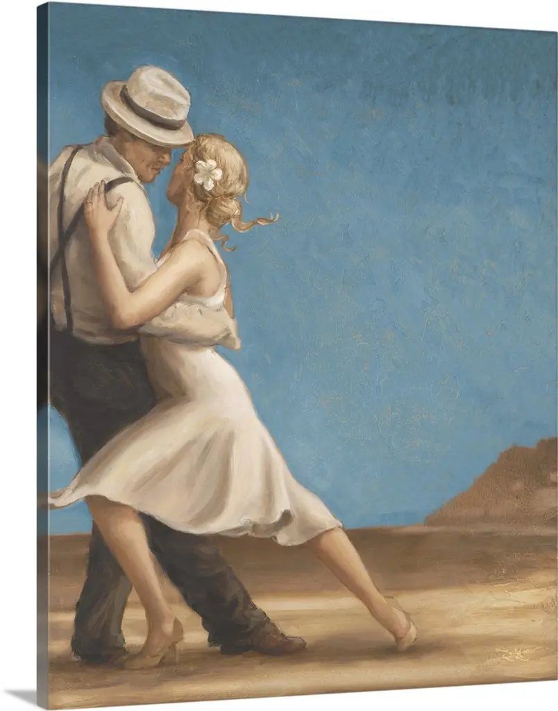 Contemporary painting of a man and woman dancing together.