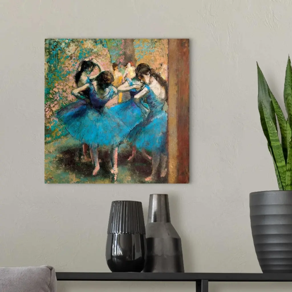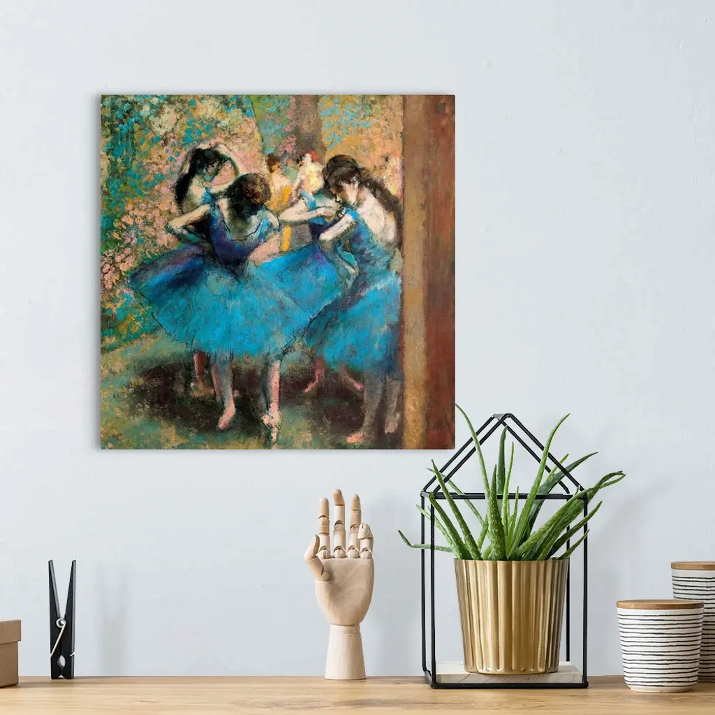 Edgar Degas' famous painting of four ballerinas practicing in the foreground with other figures visible in the mosaic background.
