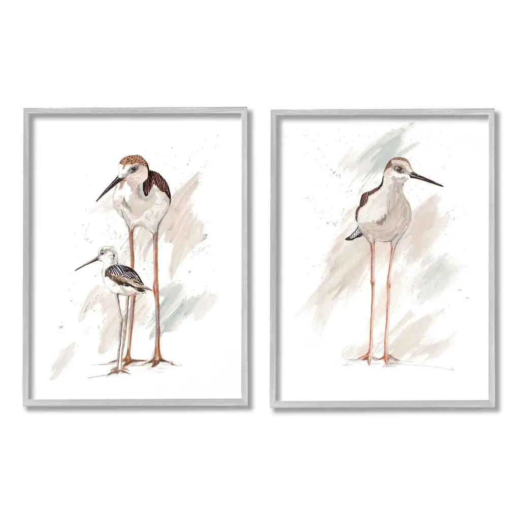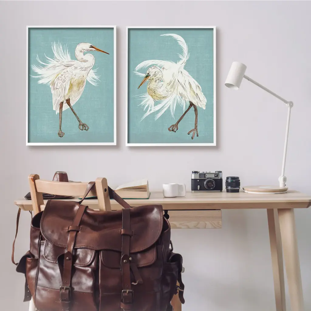 Dancing Heron Birds White Feathers Over Blue,2pc, Each 24 X 30