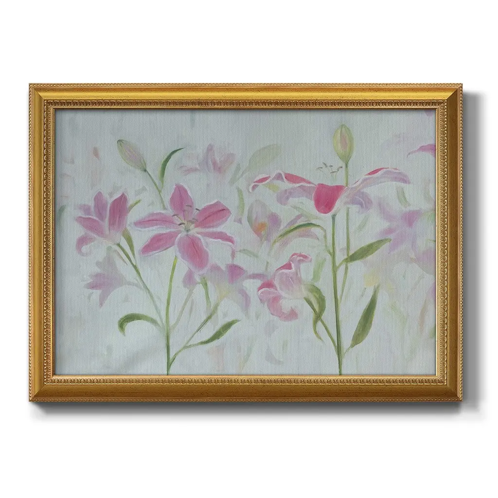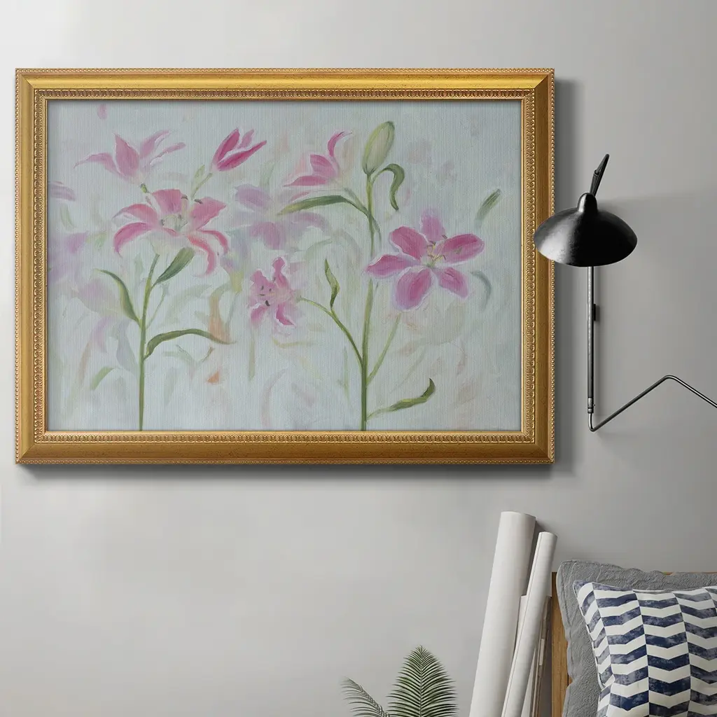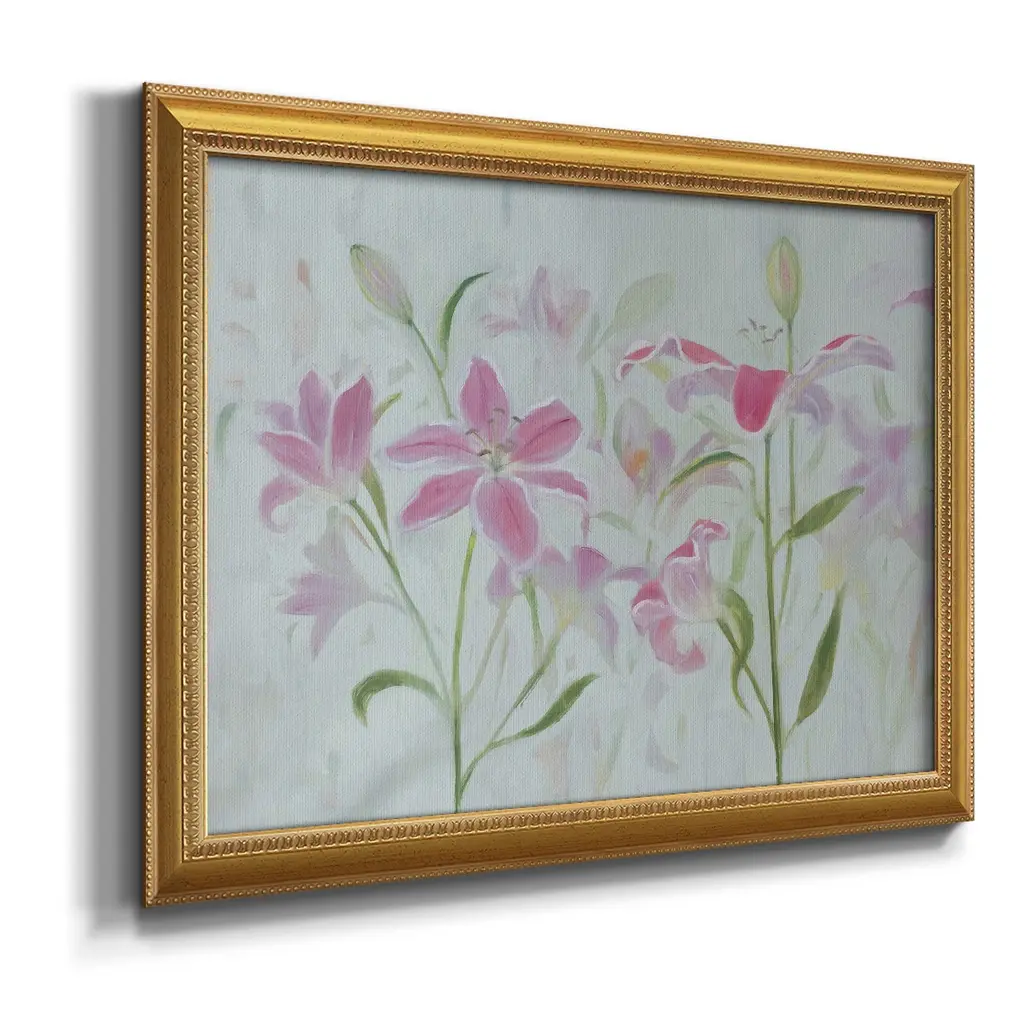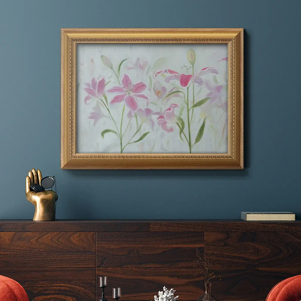 Dancing Pink Trio I Premium Framed Canvas- Ready To Hang - 18x27 - Gold