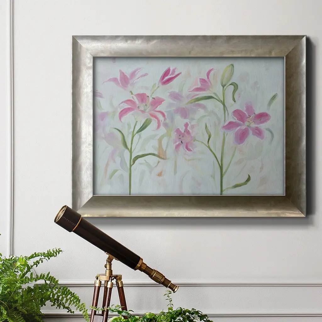 Dancing Pink Trio Ii Premium Framed Canvas- Ready To Hang - 18x27 - Silver