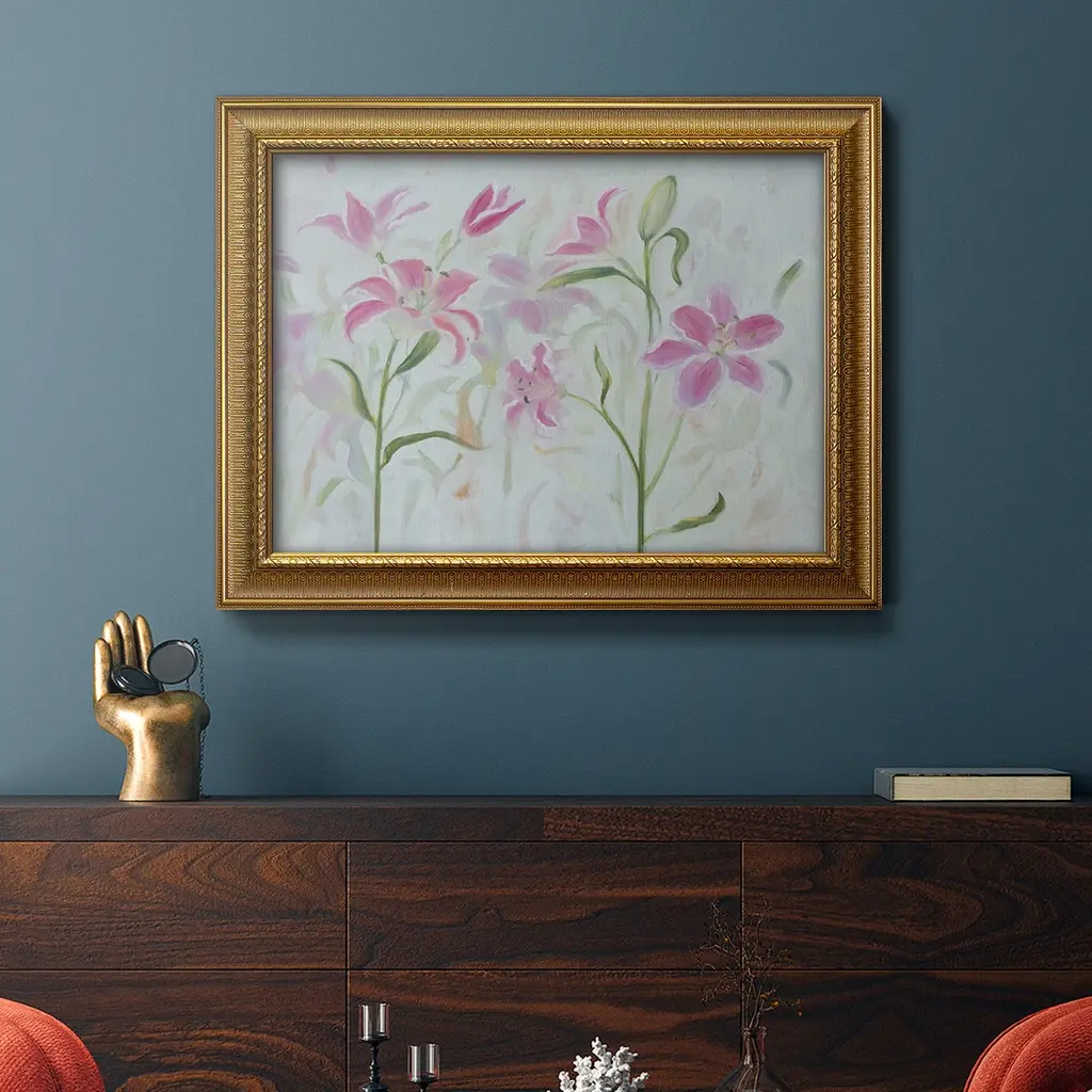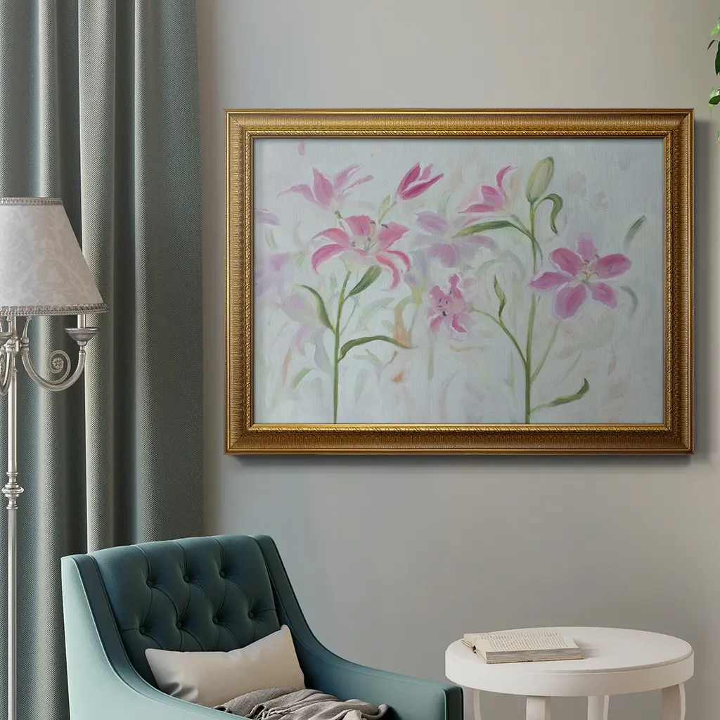 Dancing Pink Trio Ii Premium Framed Canvas- Ready To Hang - 24x36 - Gold