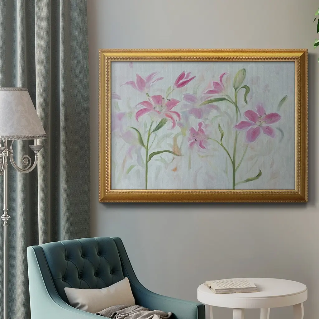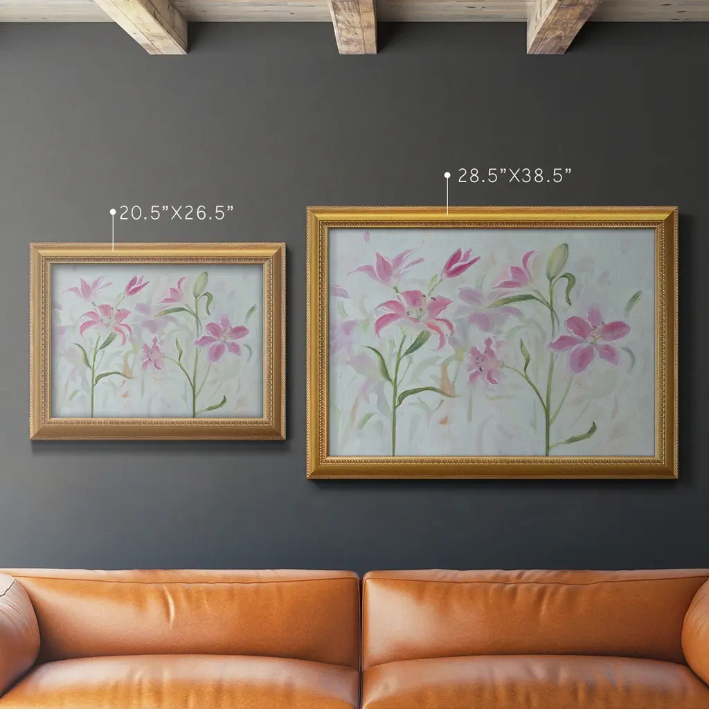 Dancing Pink Trio Ii Premium Framed Canvas- Ready To Hang - 24x36 - Gold