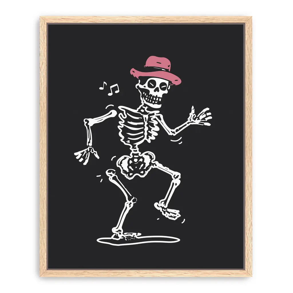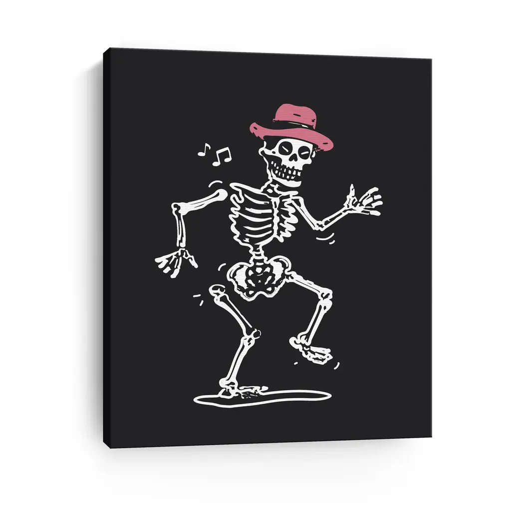 Dancing Skeleton Canvas Giclee - Framed / Black / 30x40