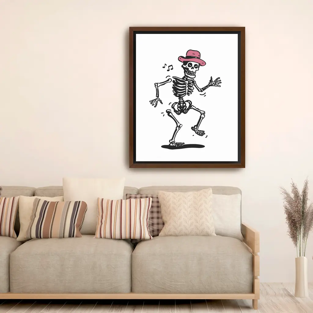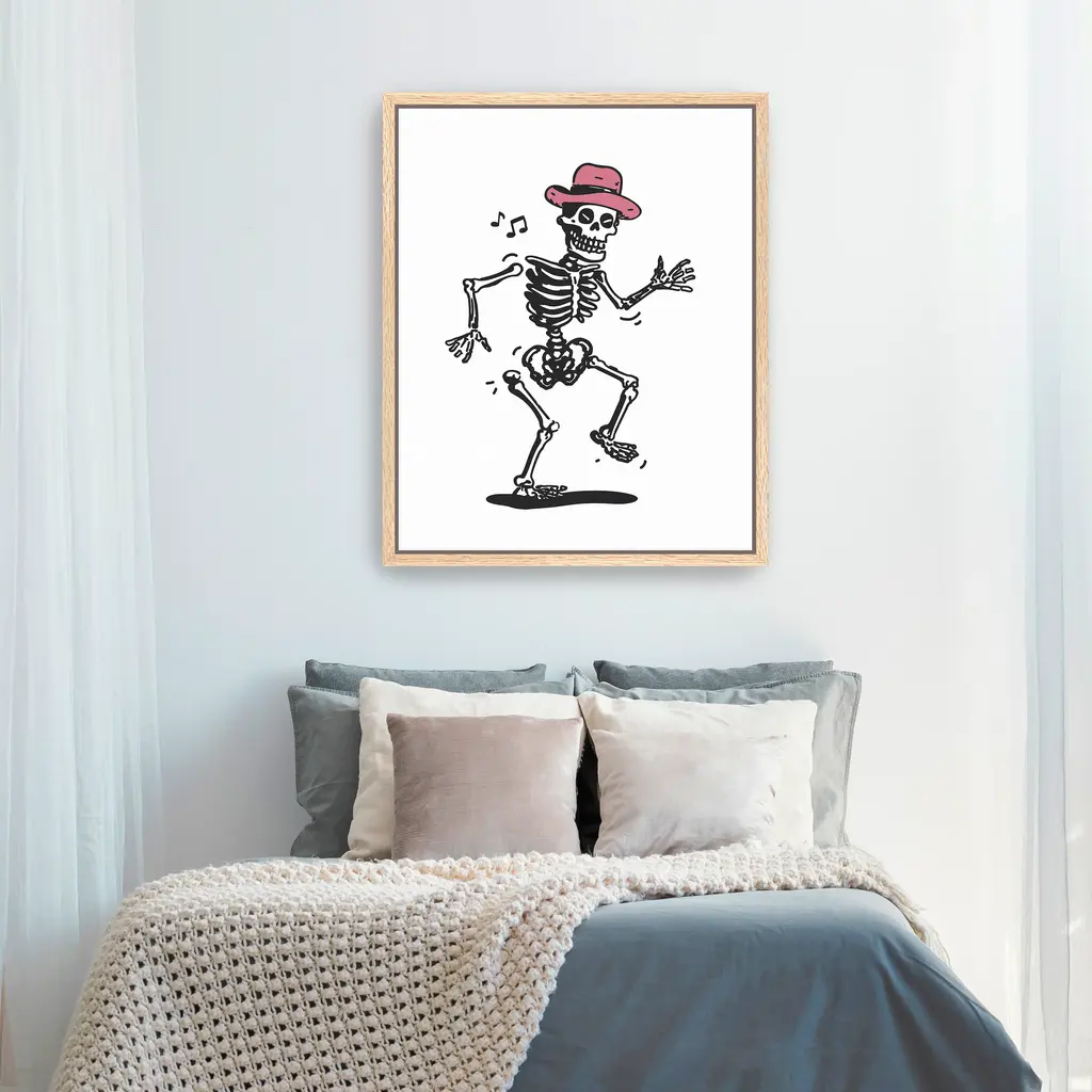 Skeletons don’t just rattle—they shimmy! This Halloween-ready design captures undead energy with a playful twist that keeps spirits high. Our Gallery Wrap Canvas Prints are proudly assembled with high quality materials in California, USA. Each piece is printed on a thick, archival grade canvas using Giclee technology. It is then hand-stretched by our experienced artisans over solid wood bars, which will not warp over time. The final product is a piece personally crafted for you to confidently display on your wall. Care and Assembly: Ensure that the location of your piece has little to no exposure to heat, sunlight, and moisture. Wipe clean, only if needed. Each piece includes a sawtooth hanger to hang on your wall vertically.