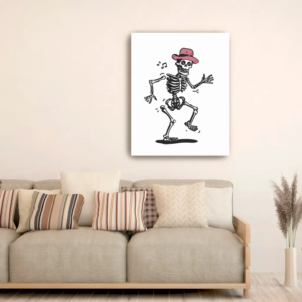Skeletons don’t just rattle—they shimmy! This Halloween-ready design captures undead energy with a playful twist that keeps spirits high. Our Gallery Wrap Canvas Prints are proudly assembled with high quality materials in California, USA. Each piece is printed on a thick, archival grade canvas using Giclee technology. It is then hand-stretched by our experienced artisans over solid wood bars, which will not warp over time. The final product is a piece personally crafted for you to confidently display on your wall. Care and Assembly: Ensure that the location of your piece has little to no exposure to heat, sunlight, and moisture. Wipe clean, only if needed. Each piece includes a sawtooth hanger to hang on your wall vertically.