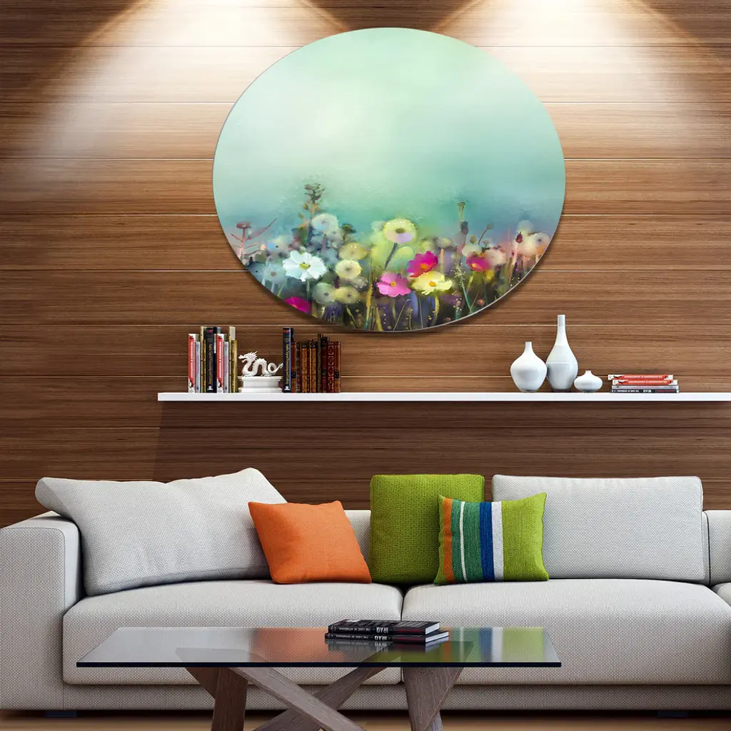 Dandelion Poppy And Daisy Flowers, Flower Round Wall Art, 23"