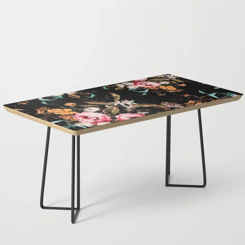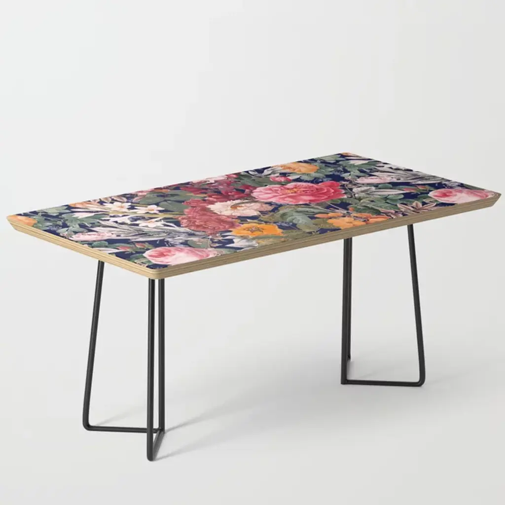 35.75" x 17.75" x 17" (H)Baltic birch table top with beveled edgeHigh quality print with satin finishSteel legs available in black or goldAssembly requiredEvery order is made just for youSHIPPING: Items are made to order and typically ship within 3-4 business days. Click here for more information about delivery options.Furniture sales are final. Click here for more information on returns.