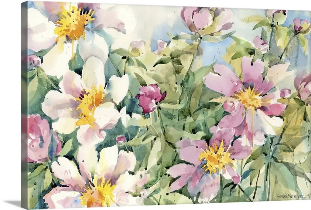 Coastal Poppies Light. by Danhui Nai is a high quality piece of canvas artwork. The finished size of this piece is 20" X 16", and it has a depth 0.75". There is a UV protective coating over the entire image, and it is ready to hang on your wall with a standard drywall screw (not included). 100% Satisfaction Guaranteed.