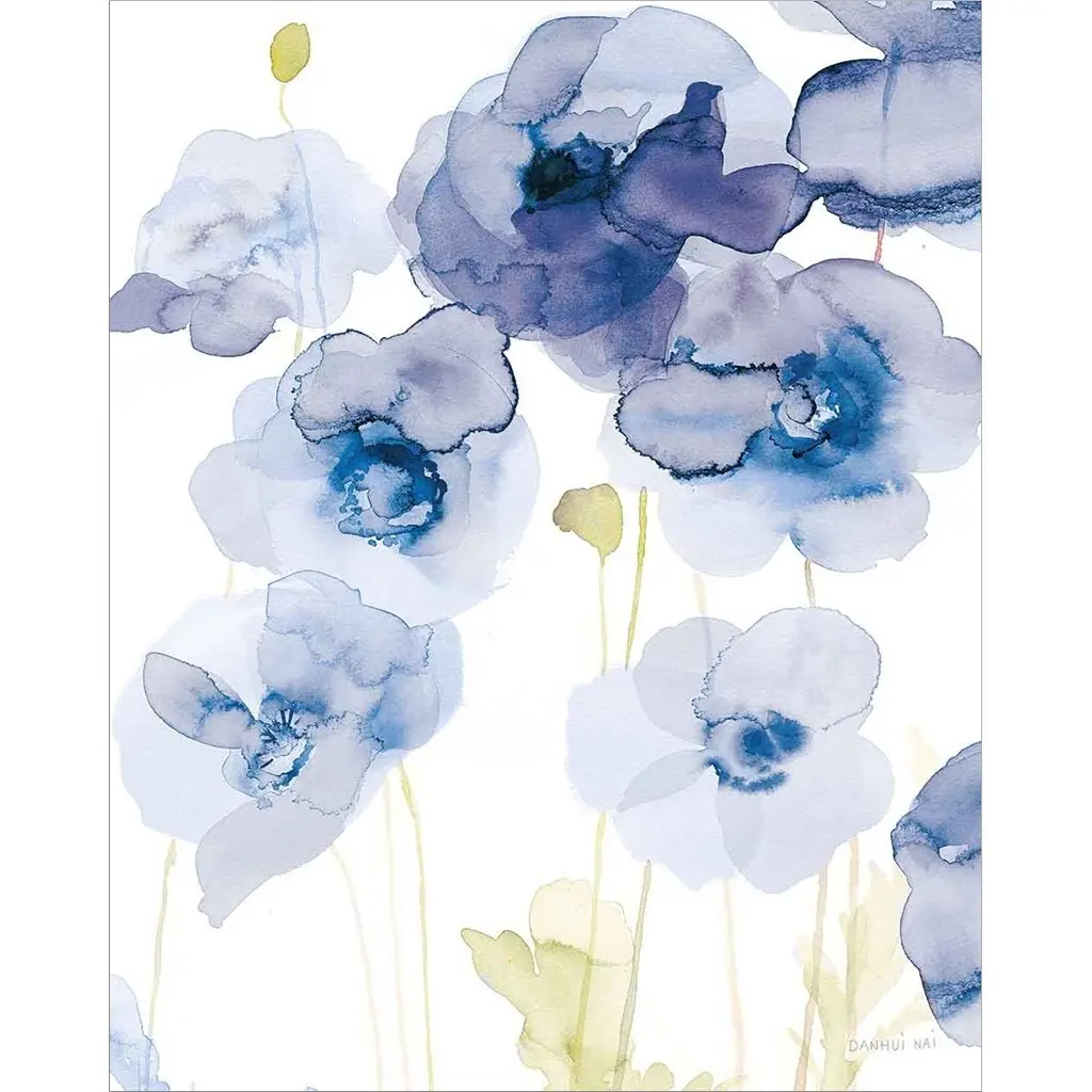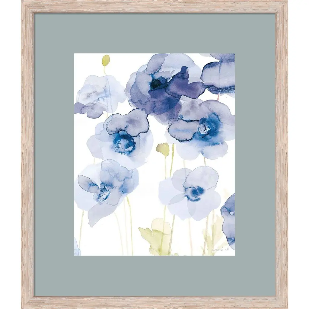 Delicate Poppies III Blue by Danhui Nai is a high quality piece of framed artwork. The finished size of this piece is 15.5" X 18". It has a Distressed Aged White Wash frame, is single matted and finished with high quality Acrylic Plexiglass. 100% Satisfaction Guaranteed.
