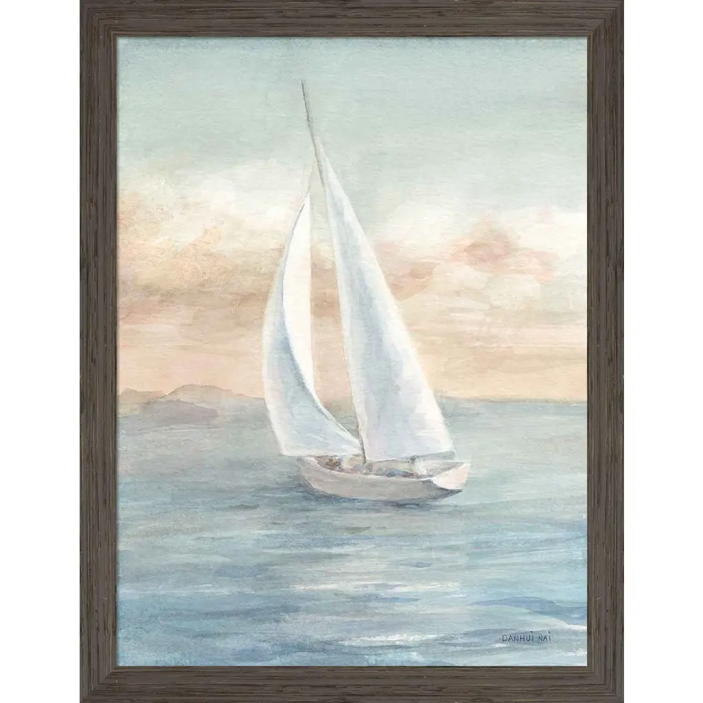 Full Sail I by Danhui Nai is a high quality piece of framed artwork. The finished size of this piece is 24" X 31". It has a Weathered White Washed Deep Gray frame and is finished with high quality Acrylic Plexiglass. 100% Satisfaction Guaranteed.