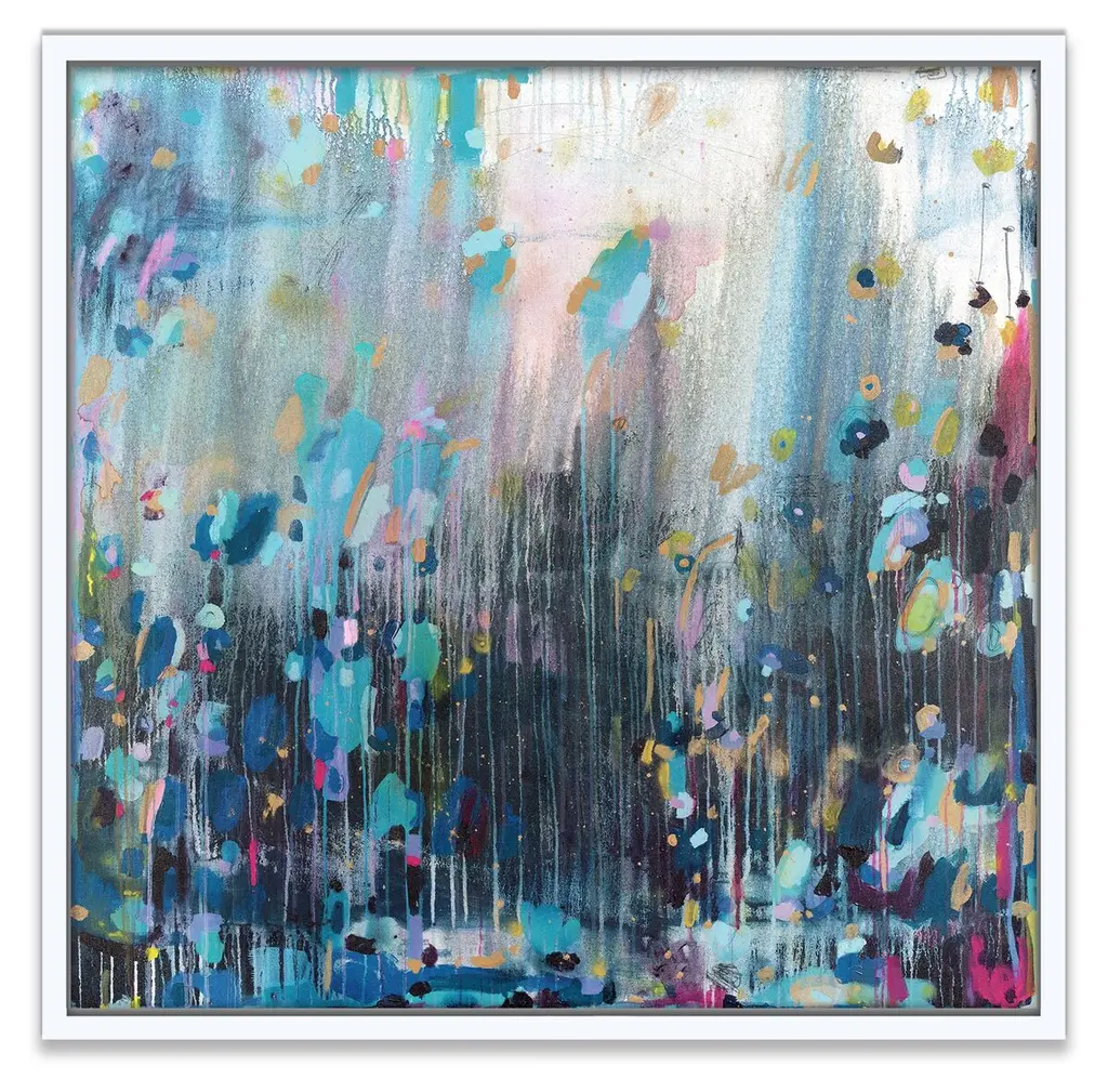 Rain Abstract VI Blue by Danhui Nai is a high quality piece of canvas artwork. The finished size of this piece is 28" X 28", and it has a depth 1.5". There is a UV protective coating over the entire image, and it is ready to hang on your wall with a Standard Drywall Screw (not included). 100% Satisfaction Guaranteed.