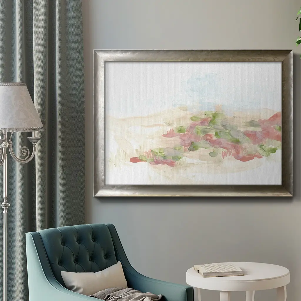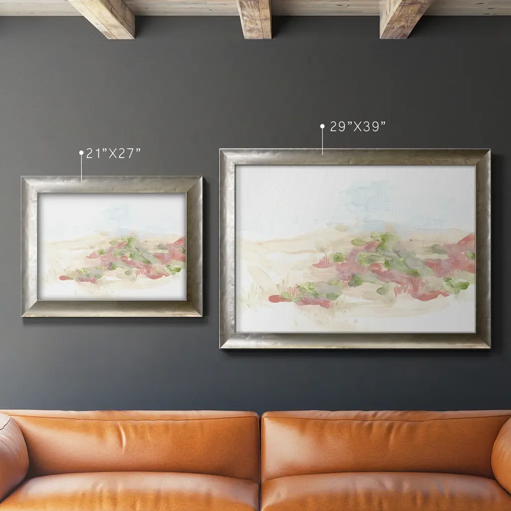 Dappled Dune II Premium Framed Canvas- Ready to Hang A Premium Framed Canvas created to last. Framed in distressed wood and available in an array of sizes and colors Featuring a beveled a solid wood stretcher bar, each piece comes ready to hand 3 SIZES AVAILABLE 16''X20'' - Overall Size 18'X27'' - Overall Size 24''x36'' - Overall Size Each piece is made to order. Each piece comes with hanging hardware. Made in the USA Ready to Hang Giclee Paper Print Acrylic Glass Beveled Matt Board