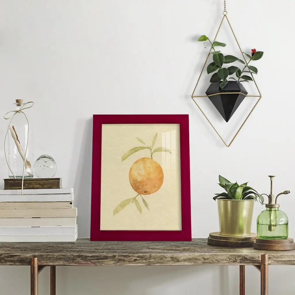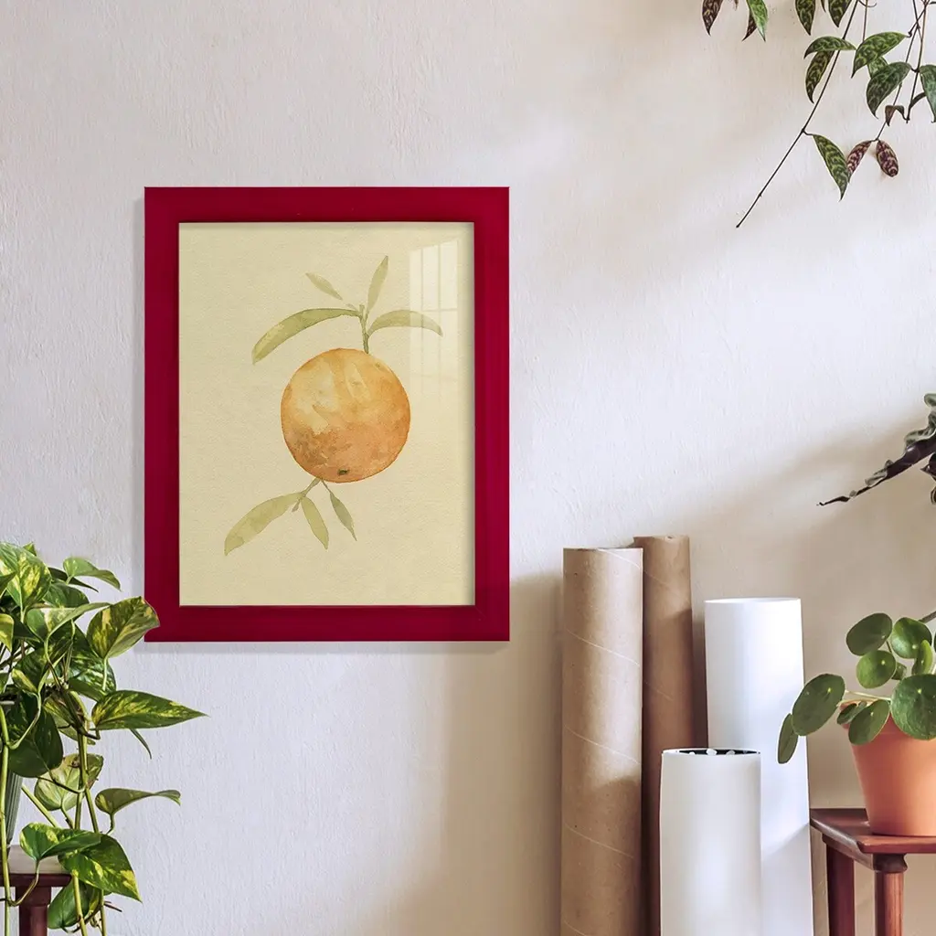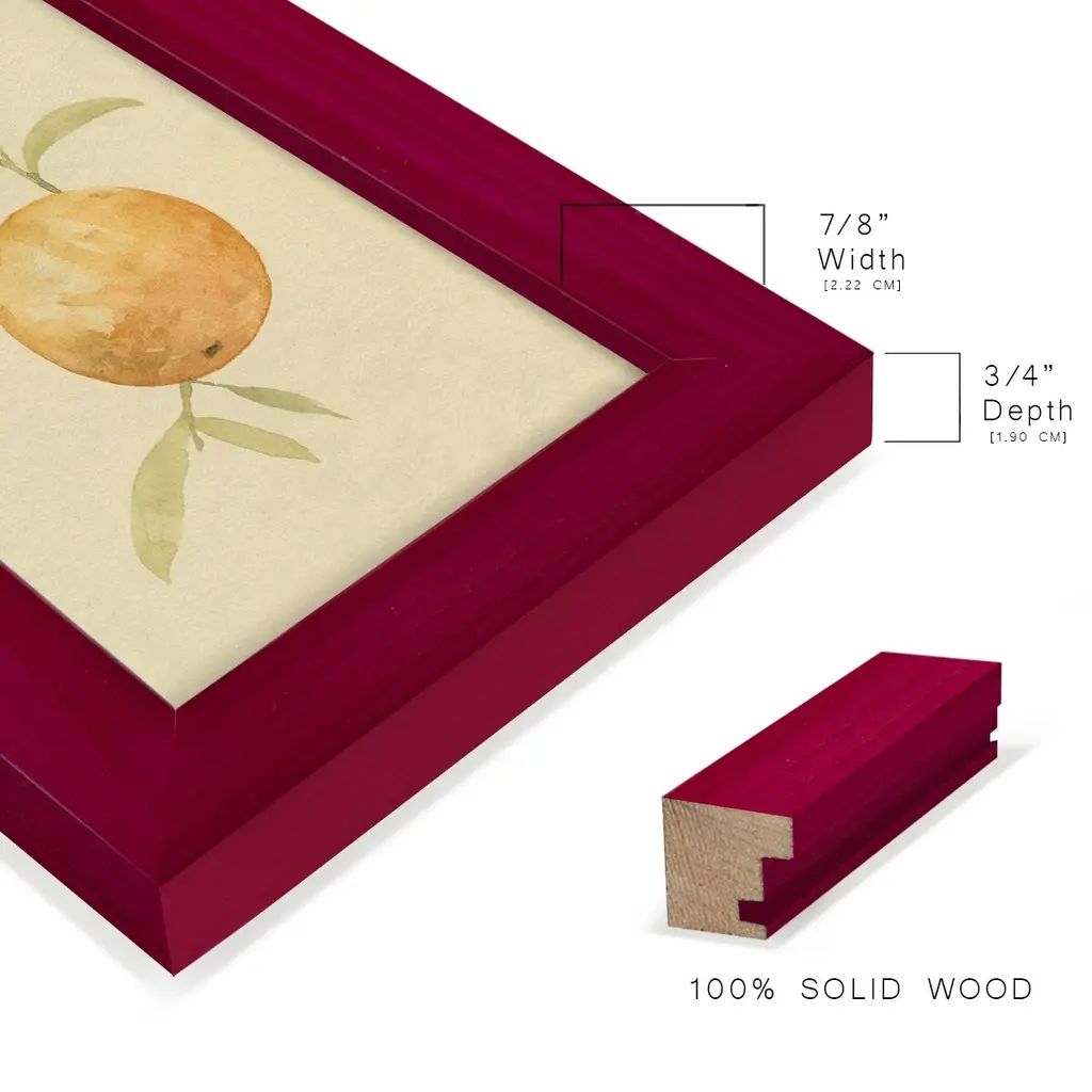 Dappled Oranges III -EZ SWITCH Framed Print w/glass-Cherry Red A delightful, framed print. Featuring a solid wood frame with real wood glass. This premium print is giclee quality. In addition, every frame features a removable back and table top stand. This allows you to change your art in the future or to just stand the art on a table for a new look. We are sure you'll enjoy our new series of EZ SWITCH Framed Art. Solid Wood Frame Real Glass Removable / Replaceable Art Built in Tabletop Stand Sizes range from 4x6 up to 12x15 - buy just one or pair them up as sets as you see fit.